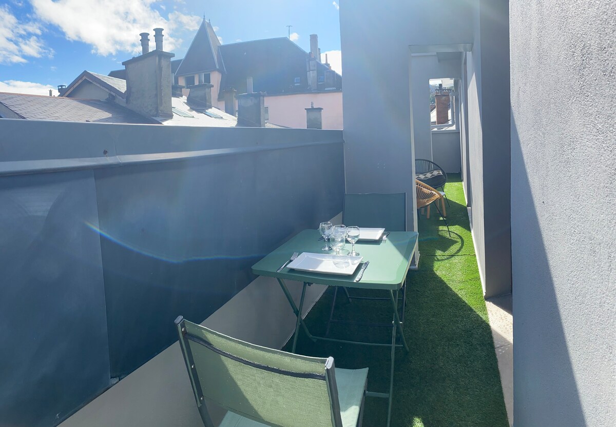 Välkommen till en plats full av historia, på översta våningen i en byggnad från 1500-talet, på den berömda Place Saint-Léger. Efter att ha klättrat uppför de fem våningarna i stentrappan kommer du till en lägenhet badad i ljus, tack vare dess 9 fönster med fantastisk utsikt över hustaken i Chambéry, klockan, slottet och de omgivande bergen. En plats full av charm, lugn och autentisk, perfekt för att upptäcka staden till fots och njuta av en speciell miljö.