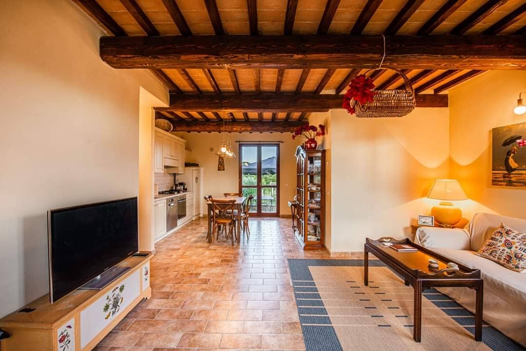 Lägenheten ligger på bottenvåningen i en klassisk toskansk bondgård som heter "Biofattoria l ‘Upupa". Magnifikt läge på sluttningen mellan Val d'Orcia och Kreta Senesi. Lämpligt för familjer med barn. Bestående av kök, stort vardagsrum, badrum med dusch, 1 sovrum med dubbelsäng och 1 sovrum med våningssängar. Det finns en bäddsoffa i vardagsrummet. Lägenheten är utrustad med wifi. Gratis parkering på privat egendom. Komplett frukostkit inklusive hembakade kakor.