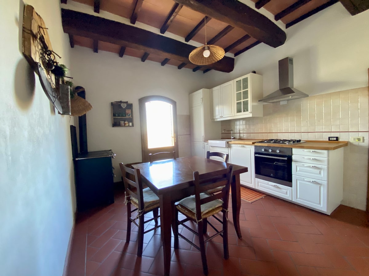 STIAMO LAVORANDO PER VOI! ...VI ARBETAR FÖR DIG! Huset är totalrenoverat och möblerat 2018 med klassiska toskanska möbler. Färgerna är varma och omslutande för att bättre vila under din semester av lugn och avkoppling. Förutom de två sovrummen med dubbelsäng har du ett kök med ett utrustat pentry, kylskåp, induktionsspis och en möblerad terrass med en vacker utsikt över den omgivande landsbygden.