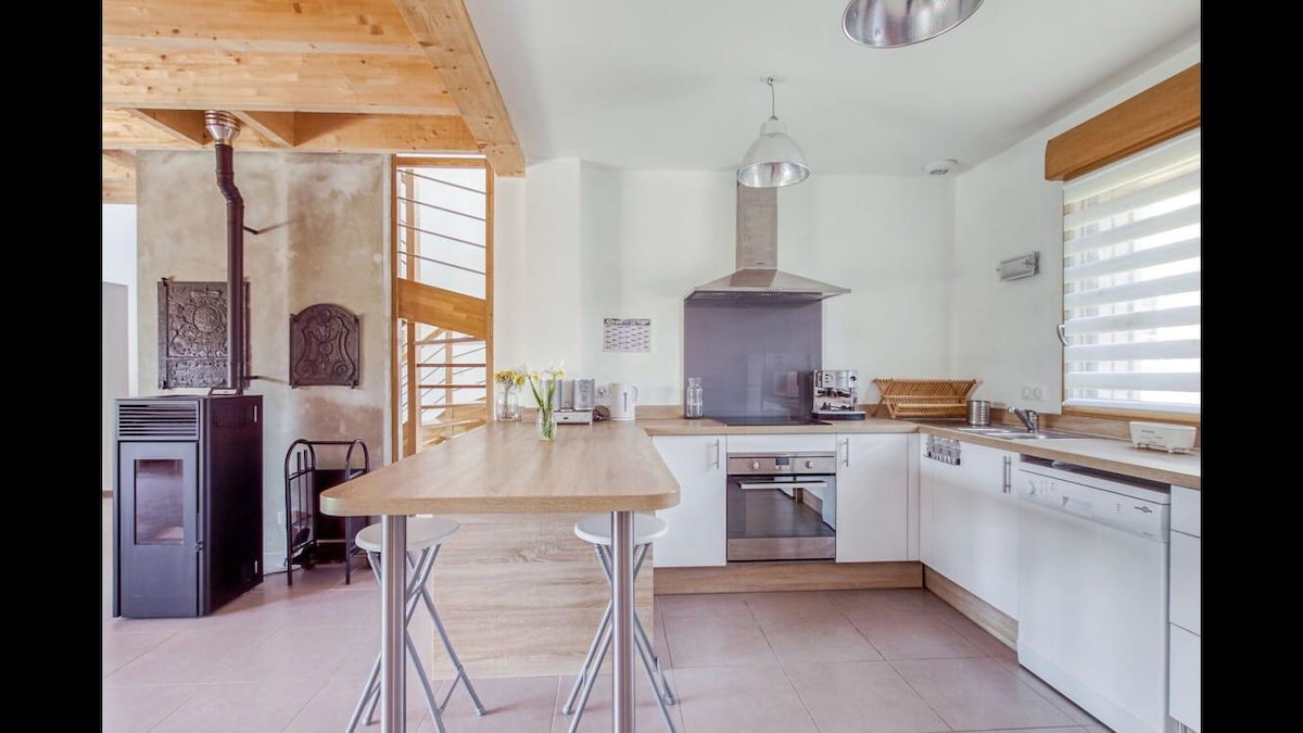Känn dig som hemma i denna funktionella lägenhet på 70 m2. En fullt utrustad lägenhet med ett utrustat kök (kaffebryggare, Senseo, vattenkokare, raclette, brödrost, mikrovågsugn ...) tvättmaskin, kylskåp med frys, skrivbord, wifi, barnstol, pelletsugn ... Vardagsrum med bäddsoffa Badrum i varje rum 1 sovrum: 1 dubbelsäng 1 sovrum: 1 dubbelsäng + 1 enkelsäng * Observera att lakan och handdukar ingår inte i hyran * Gratis parkering