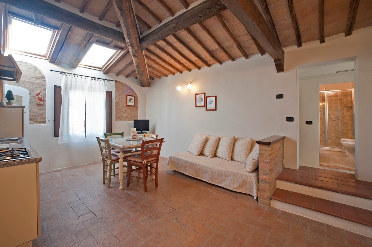 Lägenheten, som har egen ingång, har nyligen renoverats och möblerats med omsorg. Den ligger vid foten av det antika slottet Montemassi på en historisk torg i den karakteristiska medeltida byn. Med endast fotgängare tillåtna på detta torg kan du vara säker på att ha en lugn och fridfull vistelse. En 5 minuters promenad från lägenheten, erbjuder slottet Montemass besökare en kulturell aktivitet under sin vistelse.