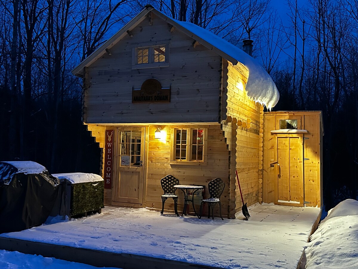Wake up to birdsong, fresh forest air, and the quiet of a true off-grid retreat. Welcome to **Anastasia’s Domain**, a peaceful forest sanctuary where guests slow down and reconnect with nature. Set on woodland with walking trails, a pond, and open skies, our cabins offer a rare escape from busy life. Enjoy morning coffee outside, explore the forest, and end the day around a campfire under the stars. An easy drive from **Montreal and Ottawa**, the Domain is a favourite nature escape.