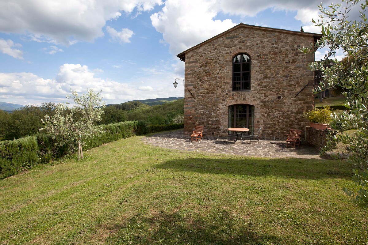 Stuga i Toscana i en gammal villa med trädgård