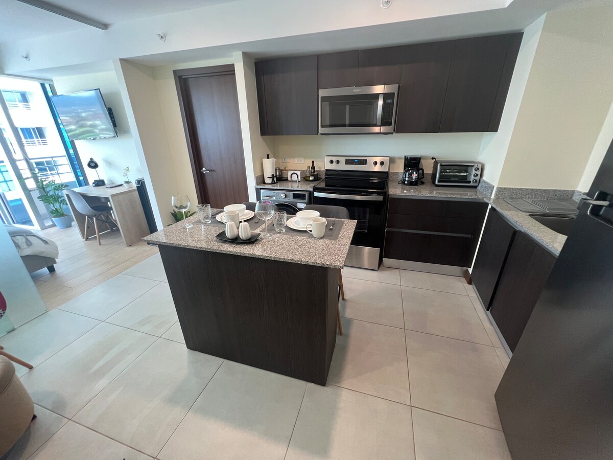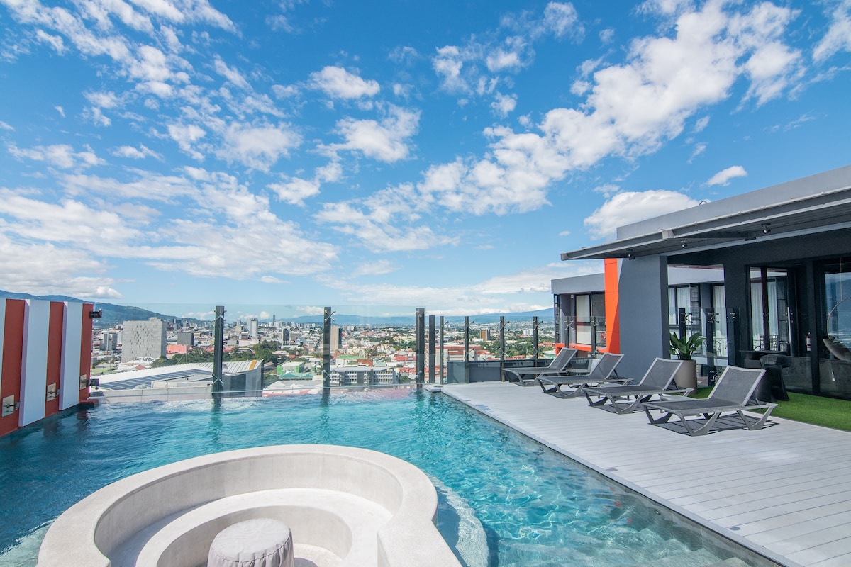 ✨ 18th floor city view, infinity rooftop pool (21st floor) in Escalante. 🏡 Welcome to Turquesa with Love – 18th Floor Modern apartment with 2 bedrooms, 2 full bathrooms, an open living area with a fully equipped kitchen, and a balcony with open city views. 🚗 Automated parking 🚀 300 Mbps fiber optic internet 🔐 24/7 security Located in Bö Escalante, one of San José’s most vibrant and gastronomic neighborhoods. ✨ Feel at home, but better!