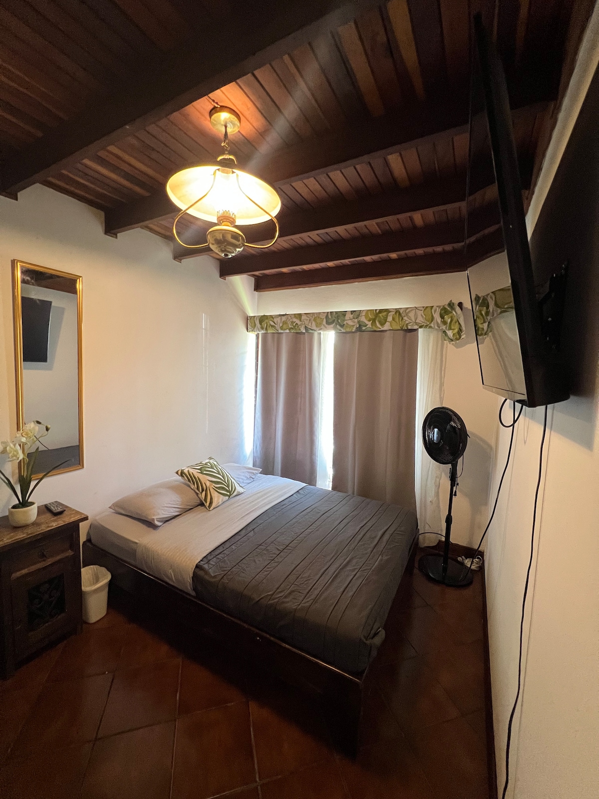 Confort moderno para dos. Disfruten de una cómoda habitación con piso de madera, baño privado con ducha y aire acondicionado. Cuenta con escritorio, clóset, buena iluminación natural, caja fuerte y cerradura electrónica para su seguridad e independencia. Ideal para parejas, amigos o viajeros de negocios que buscan un espacio funcional y agradable.