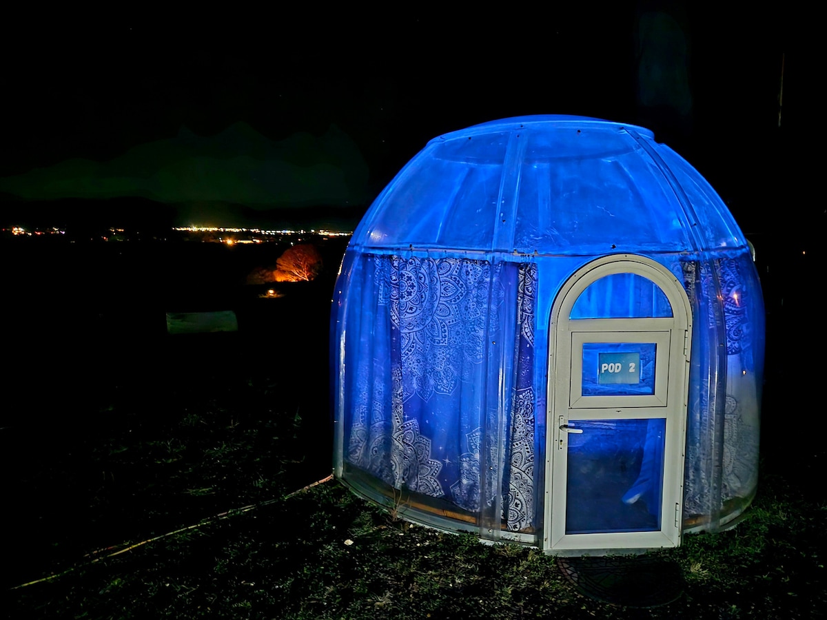 [Obligatorisk ansvarsbefrielse vid ankomst.] Denna 8 hektar stora fristad är inte lämplig för barn under 18 år på grund av den naturliga terrängen, tillgången till floden och branta klippor. INGA HUNDAR (endast ADA) Eagle Eye är en cedersauna omvandlad till en svit, belägen ovanpå en kalkstensklippa med utsikt över den förtrollande bäcken, som erbjuder en unik och uppslukande upplevelse som ingen annan. Med sitt konkava fönster som ramar in soluppgången bjuds gästerna på en mysig plats på första raden till naturens skådespel... Eagle Eye. 🦅👁️