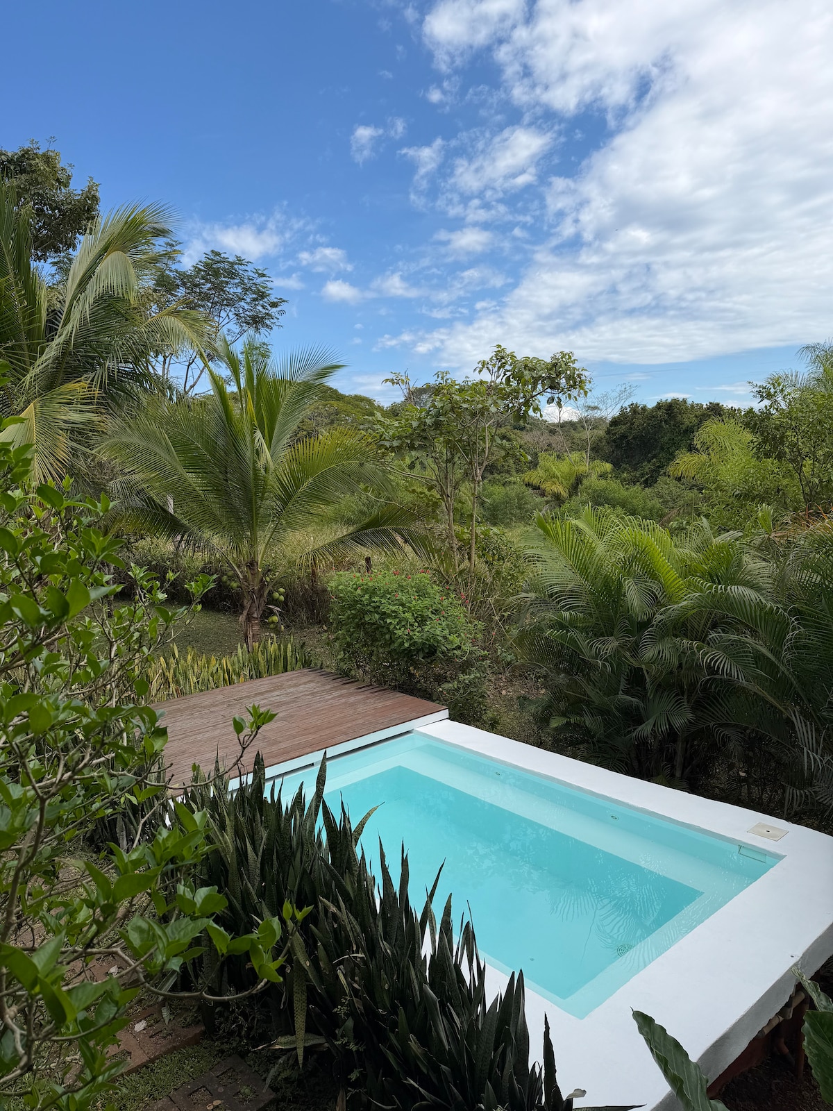 Casa Frangipani ligger på den oförstörda Nicoya-halvön på Costa Ricas stillahavskust. Strax ovanför staden Montezuma med fantastisk utsikt över Stilla havet. Vi erbjuder fyra privata enskilda semestervillor och en studio nedsänkt i naturen. Alla våra uthyrningsvillor är omgivna av frodiga landskap för maximal integritet, men vinklade för att maximera havs- och skogsutsikt. Denna enhet är en studio som kan hyras med huvudvillan nedan eller ensam. Det är helt privat.
