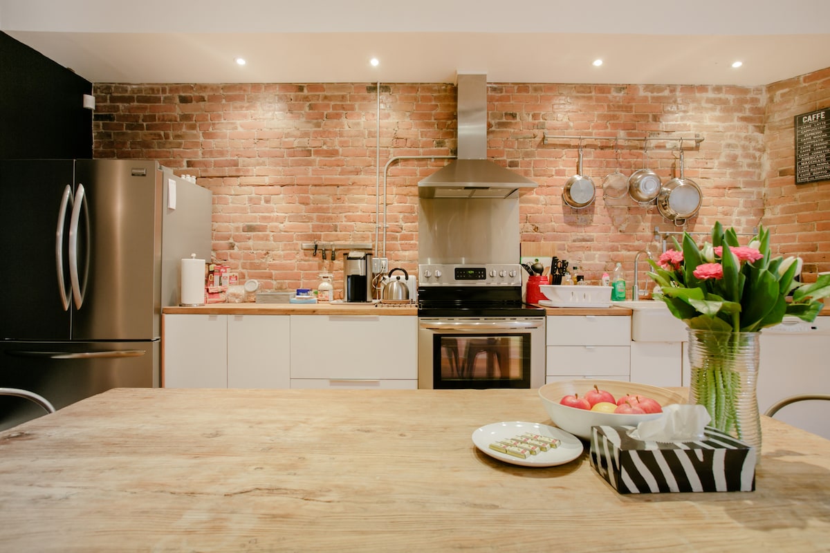Denna hyresenhet ligger på andra våningen i en kommersiell byggnad (utomhus metalltrappa), bekvämt beläget nära stora attraktioner i Montreal. Den är utformad för att rymma gäster i alla åldrar från hela världen och är perfekt för familjesammankomster. Gäster får tillgång till hela boendet, inklusive en privat uteterrass. Dessutom finns två gratis parkeringsplatser på den privata utomhusparkeringen, och gratis gatuparkering finns också i närheten.