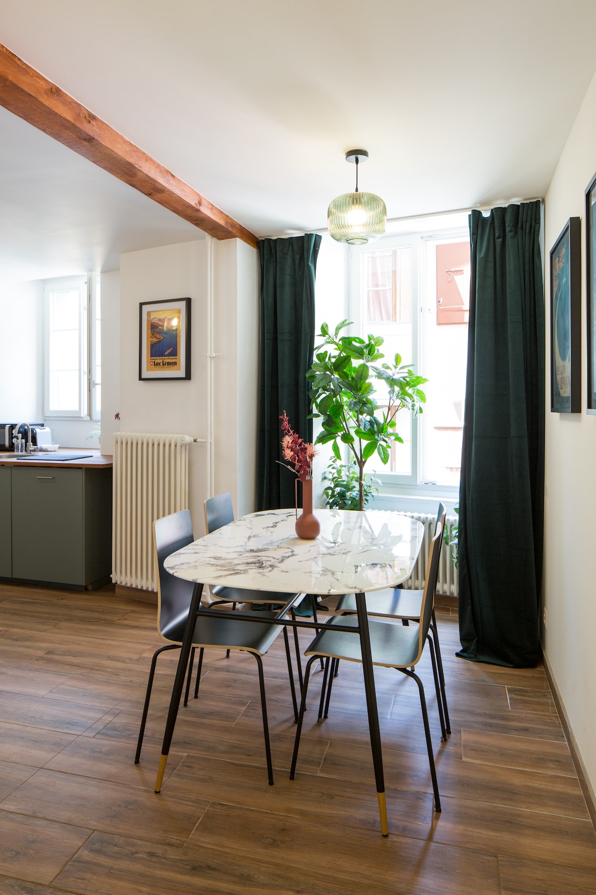 Beautiful loft on the 4th floor of a charming historic building in the heart of Montreux. Ideally located just a 3-minute walk from the train station, lake, shops, and restaurants. This cosy and thoughtfully designed space will make you feel instantly at home. The highlight is the rooftop terrace, offering a breathtaking view of the lake and surrounding mountains — perfect for a morning coffee or a relaxing evening drink.