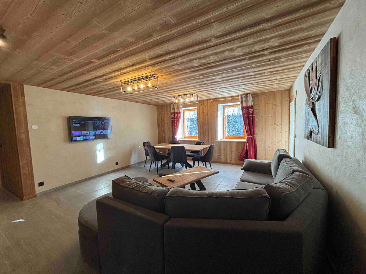 7-rumslägenhet för 14 personer, betygsatt 5★, med en yta på 372 m², levereras i december 2025: - Varje sovrum har eget badrum med toalett. - 92 m² katedral vardagsrum - 67 m² terrass utrustad med ett stort bord och vardagsrum utomhus. - Inomhus wellnessområde med bastu och jacuzzi, – Biograf, - Lekområde med biljardbord, - Lugnt område i Morzine - 200 meter från den kostnadsfria bussen "Les Granges"