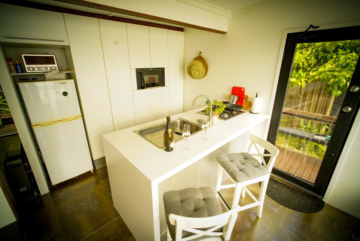 As seen on Ch7 Morning Sunrise, House&Garden, Inside Out, Homes to Love Au, My Favourite Stays Au & NZ, Stayawhile magazines and Sommerhusmagasinet (Europe) The smell of salt air, the sound of water lapping, the sun glinting off ripples that surround you...a feeling of peace and the world left behind. The Salty Dog is a space that is both cosy and open to the water, a wooden boathouse for two that invites you to relax and just 'be', to go off grid and reconnect with mother nature at her best.