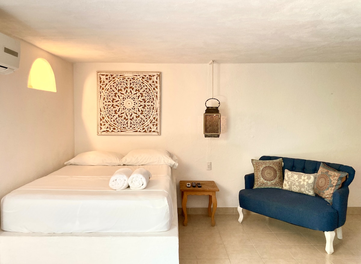 Fullt utrustad privat och mysig bungalow, 1 säng, pentry, badrum, bubbelpool. Trädgård, terrass och pool kan användas. Superutrustad privat bungalow, 1 säng, utrustat pentry, komplett badrum, bubbelpool. Användning av trädgård, palapa och pool. Utomhuskök med grundläggande ingredienser för matlagning, salt, olja, socker, peppar etc.