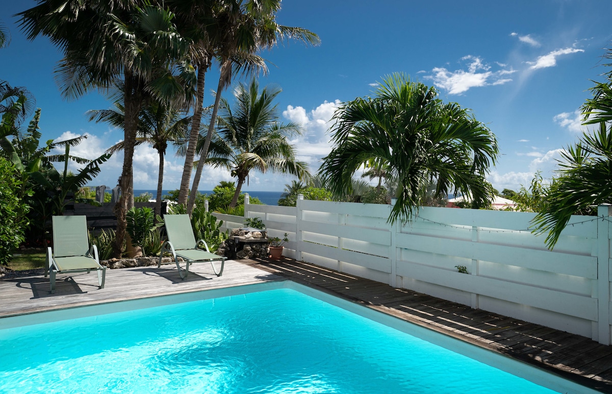 I en förtrollande miljö med fantastisk utsikt över Pigeonöarna kan du njuta av din privata pool, festliga grillar, ti-punch som vetter mot havet... Hängmatta, luftkonditionerat rum och oförglömliga solnedgångar väntar. Den sanna smaken av semestern!