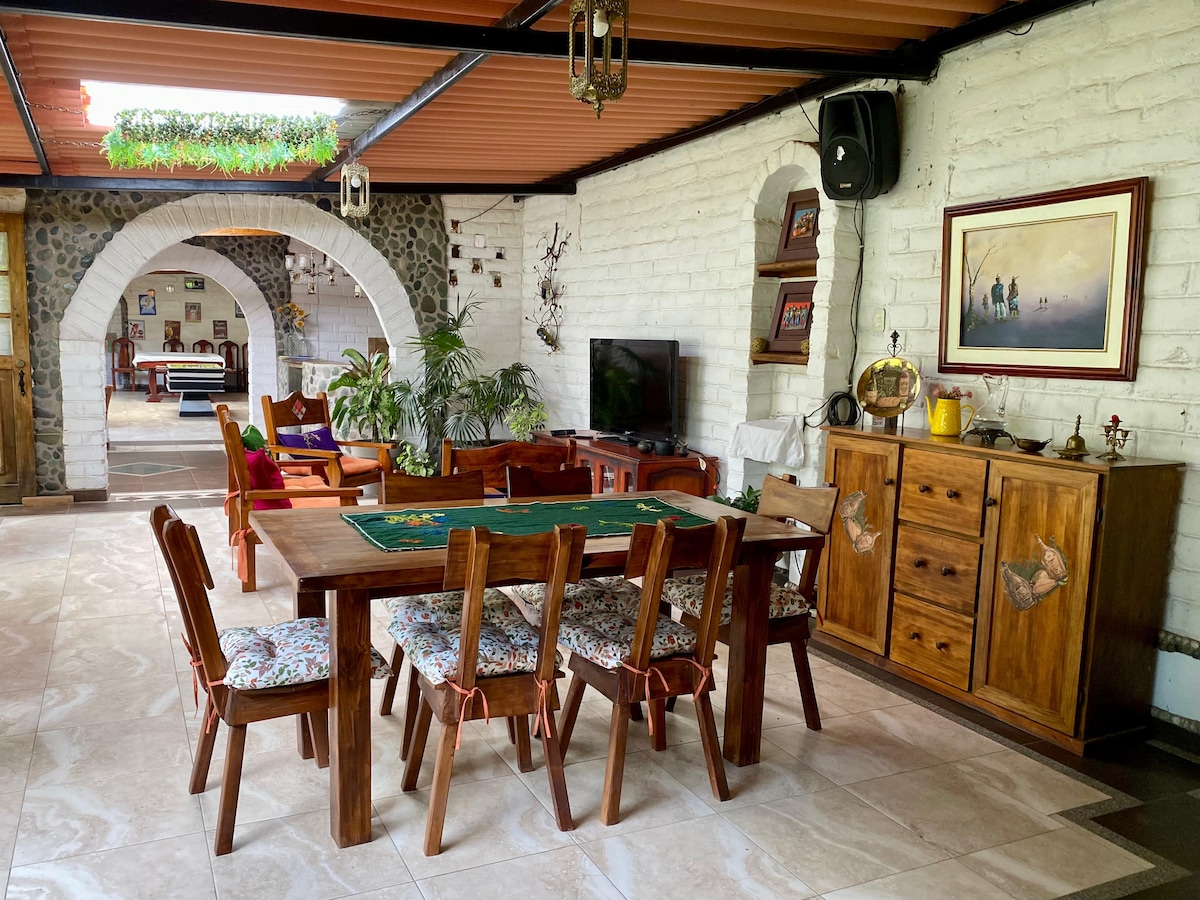 Fristående rum omgivet av trädgårdar och berg, beläget i stadens lugnaste område. Njut av tystnaden, den vackra faunan och en vacker utsikt över vulkanerna Chimborazo, Tungurahua och Altar. Det är den perfekta platsen att vila, med fågelsång som väckarklocka. Med utmärkt anslutning av bussar och taxibilar vid dörren. En tillflyktsort av frid och natur väntar på dig.