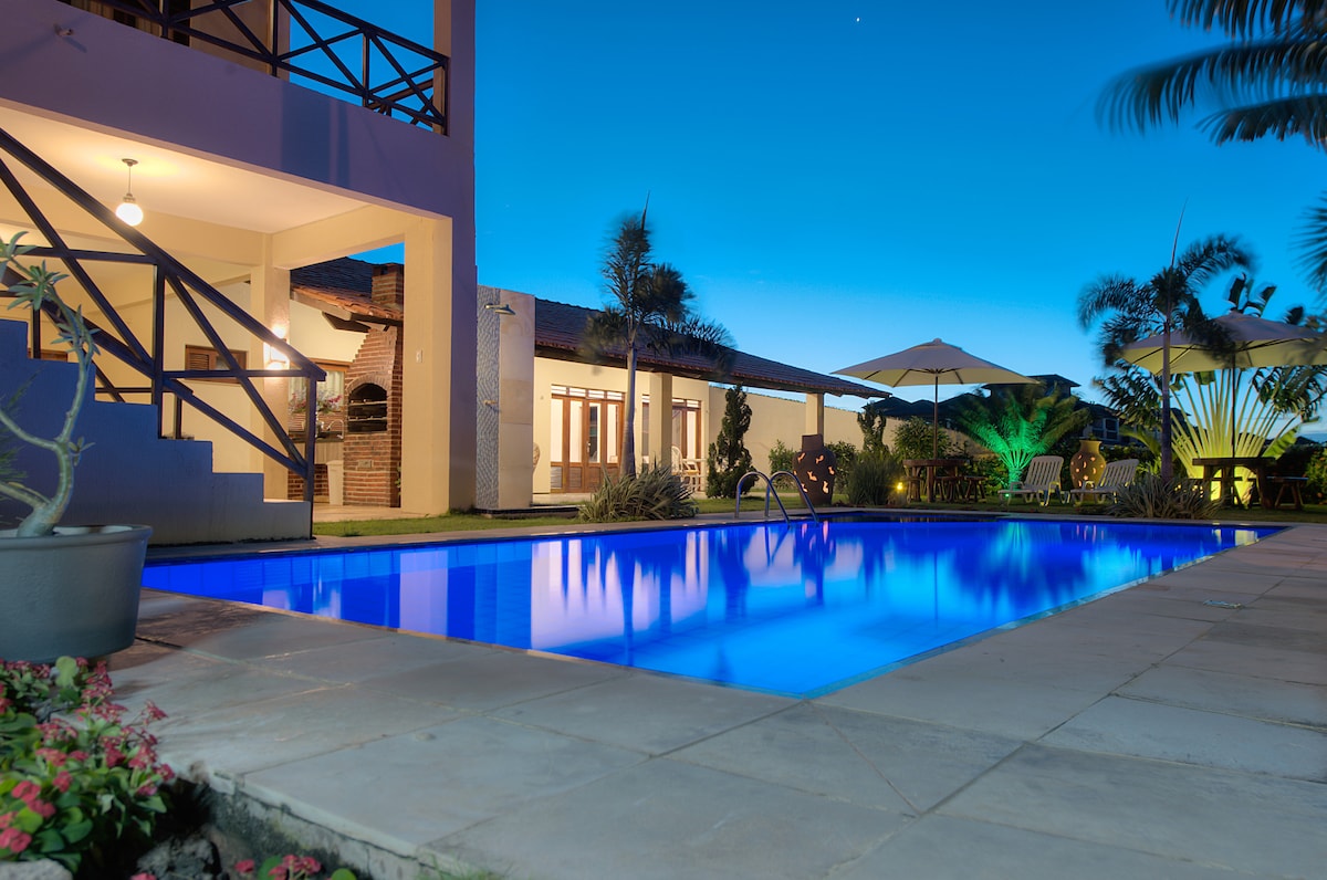 Kom och njut av en oförglömlig semester i vår oas bara 300 meter från stranden och nära de berömda Beberibe Cliffs i Ceará, Brasilien. Rymligt, nyrenoverat hus med 7 sovrum (6 är sviter), alla med luftkonditionering, dubbelsängar och krokar för hängmattor. 700 m² byggt område, pool, grillplats, vardagsrum och matsalar, och fullt utrustat kök. Ha kul i komfort, men observera: hög musik, fester och liveband är inte tillåtna eftersom detta är ett bostadsområde.