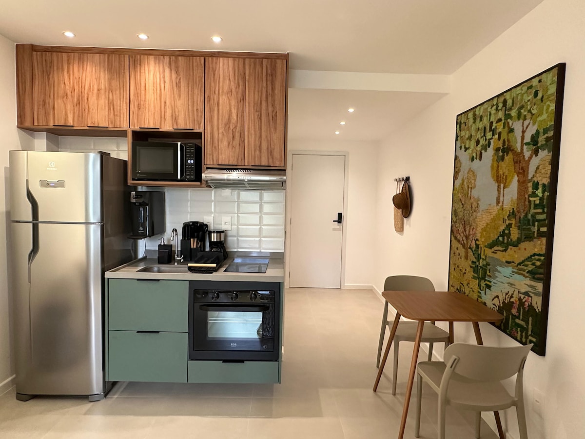 Denna unika plats har sin egen stil, den har precis renoverats, vacker utsikt över Cristo Redentor, rustik och enkel samtidigt som den är bekväm. Trevlig liten terrass med Ofuro, grillplats och gourmetutrymme. Stor huvudsvit med bubbelpool Kök integrerat i vardagsrummet, behaglig känsla av rymlighet. I hjärtat av Copacabana, nära tunnelbanan, butiker, stormarknader och ett kvarter från stranden.