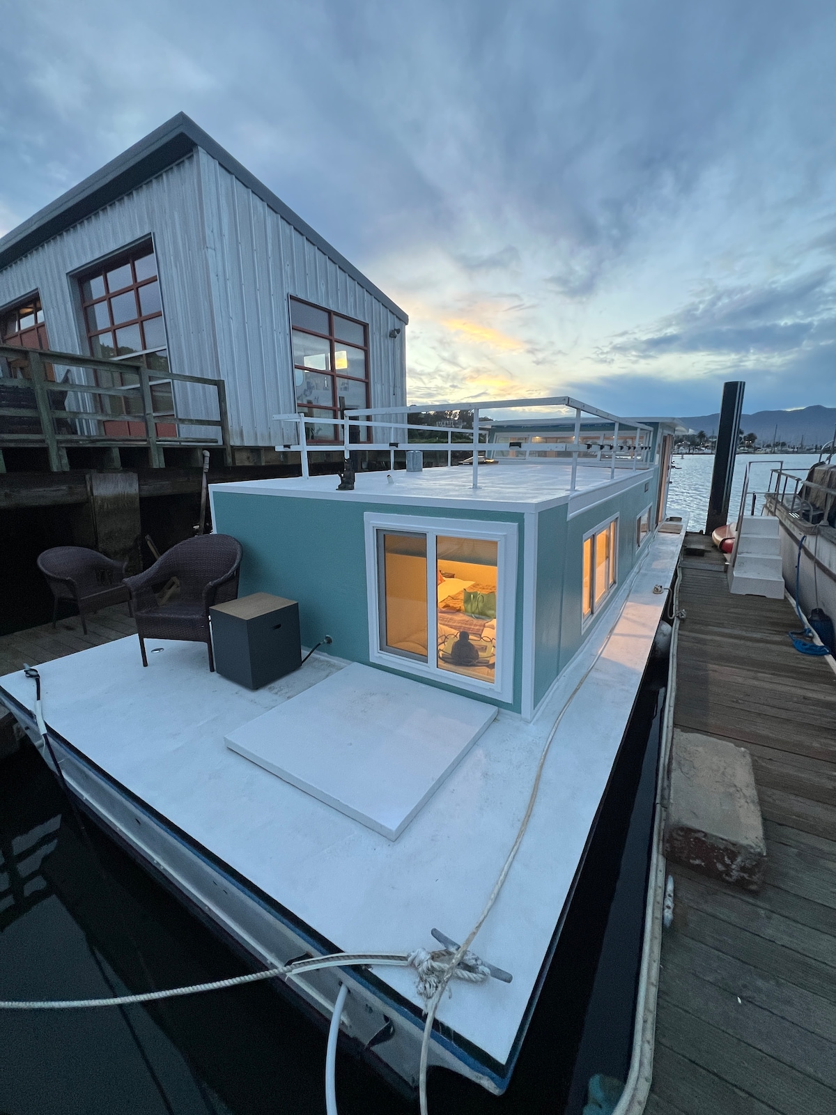 Multilevel 1 sovrum husbåt i önskvärda Sausalito. Upplev lugn medan du arbetar hemifrån eller när du semestrar... Bra kök med full storlek kyl/frys, vinkylskåp, spis och diskmaskin. Husbåt i säker marina med lugna grannar. Restauranger, butiker och färja 10 minuters promenad bort. Njut av naturen på takterrassen, vandra en närliggande stig eller starta de 2 kajakerna från bryggan. Förvaring tillgänglig under trappan och stor däckslåda för användning. Gratis gatuparkering i närheten