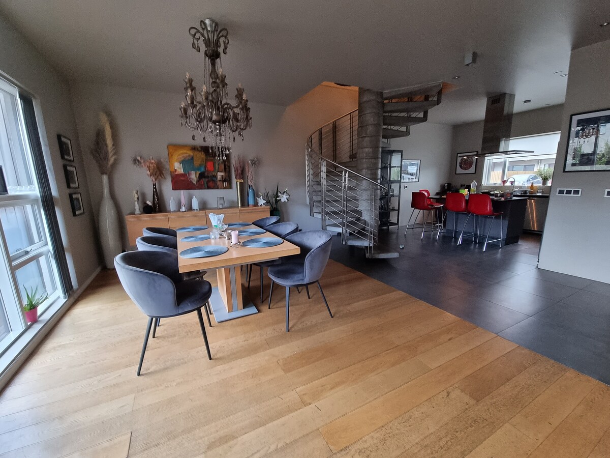 Vårt rymliga hem är 265 fm2 med privat parkering, havsutsikt och trevlig trädgård i ganska grannskap 10-15 minuter från centrala Reykjavík med buss/bil. Busstationen ligger 2 minuters promenad bort. 5 minuters promenad till lokal pool, 24 timmars stormarknad, apotek, bageri, glassbutik. Vacker restaurang/bar med utsikt över havet och solnedgången 2 minuters promenad bort. Köket och vardagsrummet ligger i ett öppet område - mycket rymligt. Det finns 4 sovrum och sängarrangemanget kan ändras perfekt för familjen.