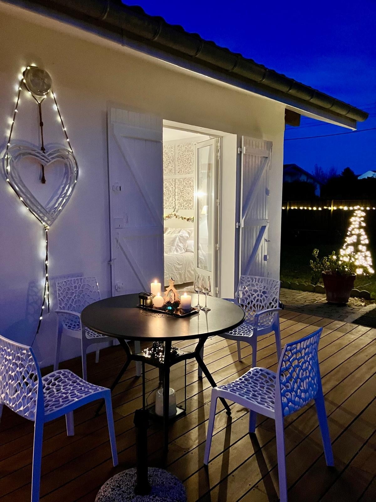 Loftstudio 20 minuter från stränderna i Landes i hjärtat av en lugn och fridfull grön oas! Detta vackra utrymme på 70 m2 under taket är utformat för avkoppling ... Det ligger på övervåningen i vårt passiva trähus, ljust med sin glasvägg, och har exklusiv tillgång till en takterrass på 30 m2 för lunch eller sol. En loft i 5 zoner: sovrum (säng 180), vardagsrum med Apple TV, Itunes, Netflix, bibliotek, kök och duschrum med toalett tvättmaskin/torktumlare. Perfekt för ett par!