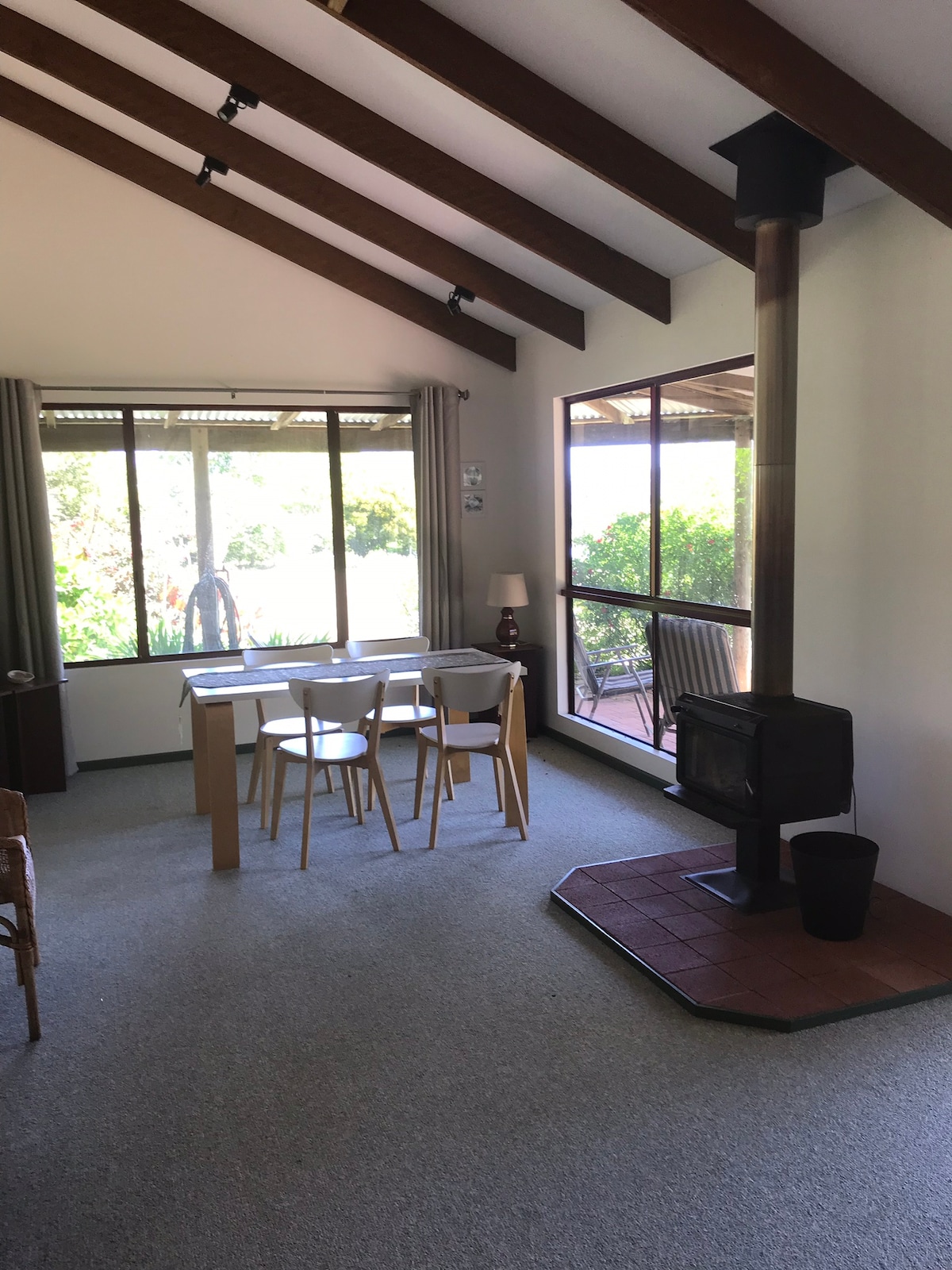 Kom närmare naturen på denna oförglömliga tillflyktsort. Denna stuga ligger högt upp på kullen med svepande utsikt över jordbruksmark. Helt isolerad, med omvänd cykel AC och en vedeldad kamin. Chalet 1 har 2 mysiga sovrum (1 King, 2 Singles), ett fullt utrustat kök öppet till ett stort vardagsrum, 2 däck, ett badrum med toalett och dusch. Stugan är helt isolerad med omvänd cykel AC och en vedeldad kamin (en natt gratis ved). Bokningar av fler än två personer får tillgång till det andra sovrummet.