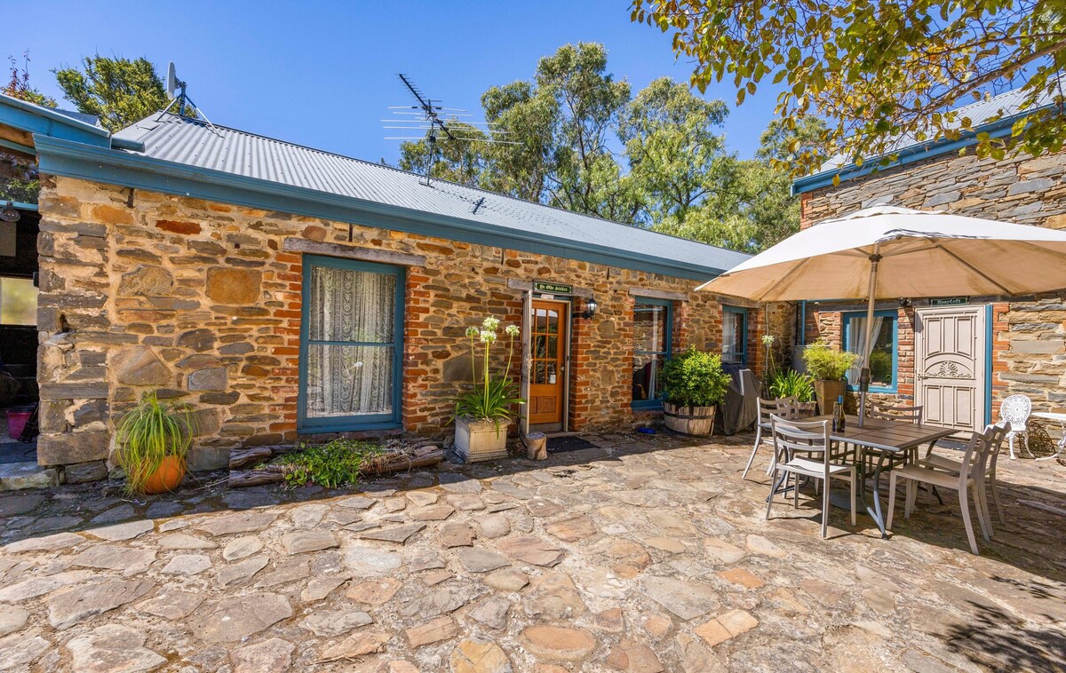 Situated in Rowland Flat on a three-acre property, the stone cottage was the original tack and feed rooms for Mr Rowland's stables. Separated by a courtyard the stables are now the home of the host. The cottage is comprised of a truly delightful bedroom with an antique double bed with stunning garden views; comfortable lounge room with TV/DVD, CD/radio, books and games; light and open equipped kitchenette with bar fridge, microwave, large electric frying pan and breakfast bar overlooking gardens through french windows (provisions for continental breakfast); the bathroom has both separate shower and claw foot slipper bath, toilet and vanity. R/c air-conditioning/heating and ceiling fans throughout. Access from the cottage to your own verandah with garden spilling over…serenity…the perfect spot for breakfast, coffee or bottle of local wine. Enjoy walks through our vineyard and paddocks and come across surprises such as our free-range chooks, wood fire pizza oven, an array of interesting seating and more. Incredible views across the valley floor to the imposing ranges or, bordering our property, the beguiling North Para River (in winter a roaring, cascading joy to behold or in summer the rock based riverbed allows access to caves, a geologists delight) and the birdlife is bountiful. Use of the swimming pool is available in the warmer months.