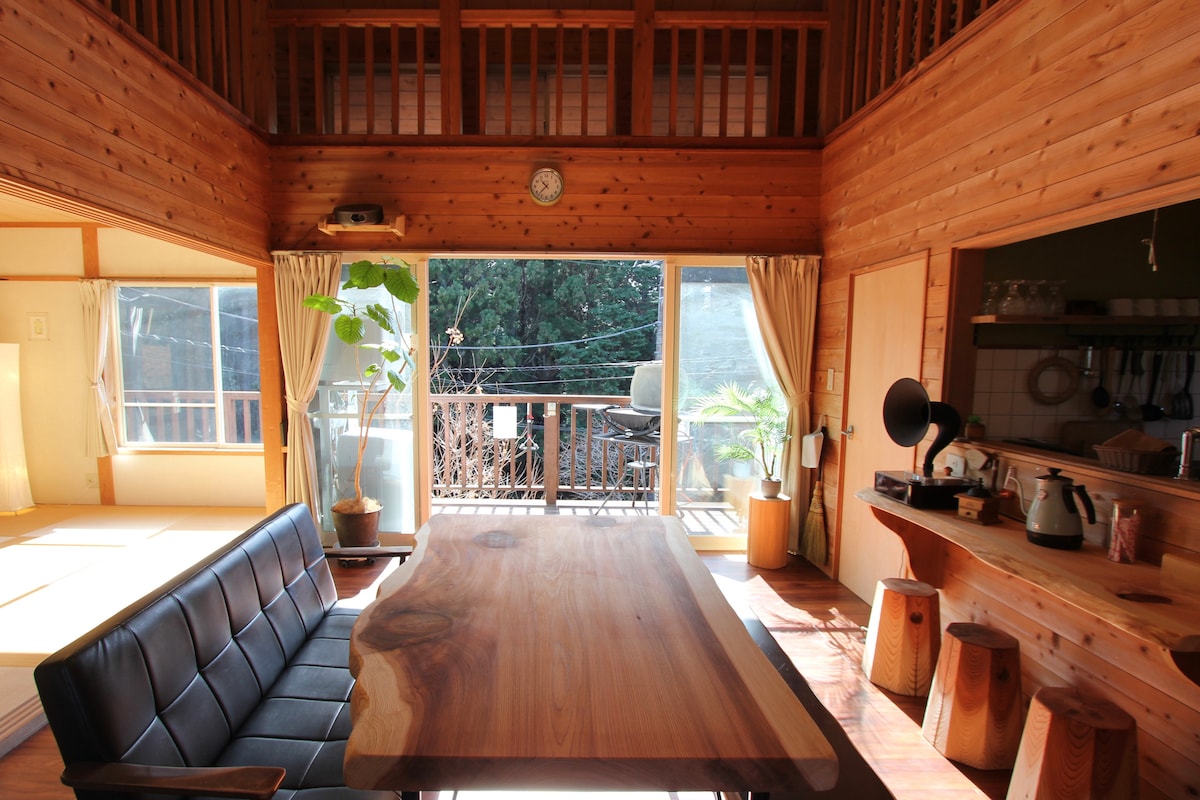 Hej!Det här är Riki från hyresvillan Namisa. En varm träinteriör och fåglar som kvittrar på morgonen när du vaknar. Vi öppnade hyresvillan Namisa - Nami no Hosa Terrace - med konceptet att ha en lugn tid med vänner och familj i naturen omgiven av träd, bort från det hektiska vardagslivet. Inredningen, som renoverades med idéer från min fru och dotter, har också ett rum i japansk stil där du kan koppla av på tatamimattor, och det är också säkert för små barn. Loftområdet har också några roliga funktioner. Vi hoppas att NAMISA kommer att hjälpa dig att skapa minnen. Vi ser fram emot att välkomna dig ♪♪ * Vänligen var noga med att läsa följande förbud och göra en bokning eftersom det inte är möjligt att tillgodose begäran om en drickesfest till sent på kvällen. * Eftersom det är i en naturlig miljö kan det finnas insekter.Vi har vidtagit åtgärder, men vi kan inte helt förhindra det.Vänligen förstå i förväg.