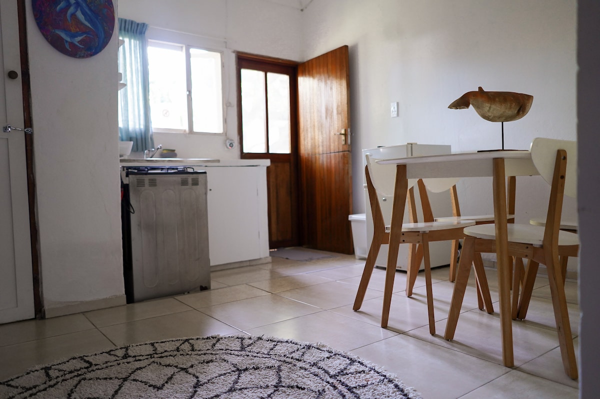 Mysig självhushållsenhet i de frodiga trädgårdarna i Moonstone Lodge, bara några minuter från stranden. Inkluderar ett pentry och eget badrum. Wi-fi finns i baren och matplatsen. Frukost och middag finns tillgängliga på begäran. Vi kan ordna massage, yoga, ljudläkning, safari, delfinsimning och dykning. Koppla av vid poolen eller utforska Pontas skönhet. En fridfull, välkomnande bas för din kustresa.