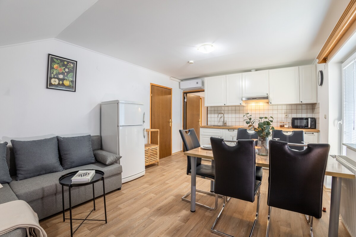 Inbäddad i hjärtat av Solčava erbjuder vår eleganta lägenhet den perfekta blandningen av komfort och bekvämlighet för din vistelse. Oavsett om du är här för affärer, en romantisk semester eller ett soloäventyr är detta utrymme utformat för att vara ditt hem hemifrån. Beläget i det fridfulla grannskapet är du bara några steg från områdets bästa sevärdheter (Logar dalen etc.), restauranger och nära den lokala butiken, gym och ikoniska gotiska kyrkan. Vi ser fram emot att välkomna dig!