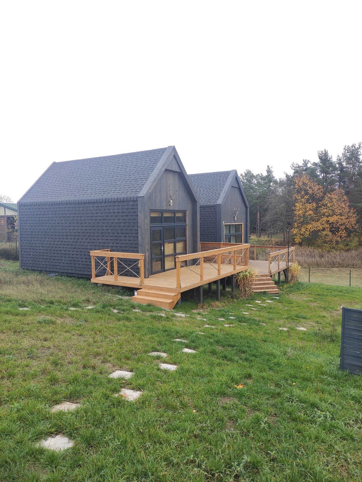 Vårt trähus har designats på ett modernt och funktionellt sätt. Vi försökte smälta in perfekt i miljön och inte störa naturen som omger oss här från alla håll. Vår lilla by har inte gett upp för tiden, allt fungerar här som tidigare. Det finns ingen butik eller restaurang, inga turister, bara tystnad och natur. Byn är omgiven av ängar och Piska urskogen, 10 km till närmaste byar. Tranor och otaliga vattenfåglar bjuder in till en daglig show. Här hittar du lugn