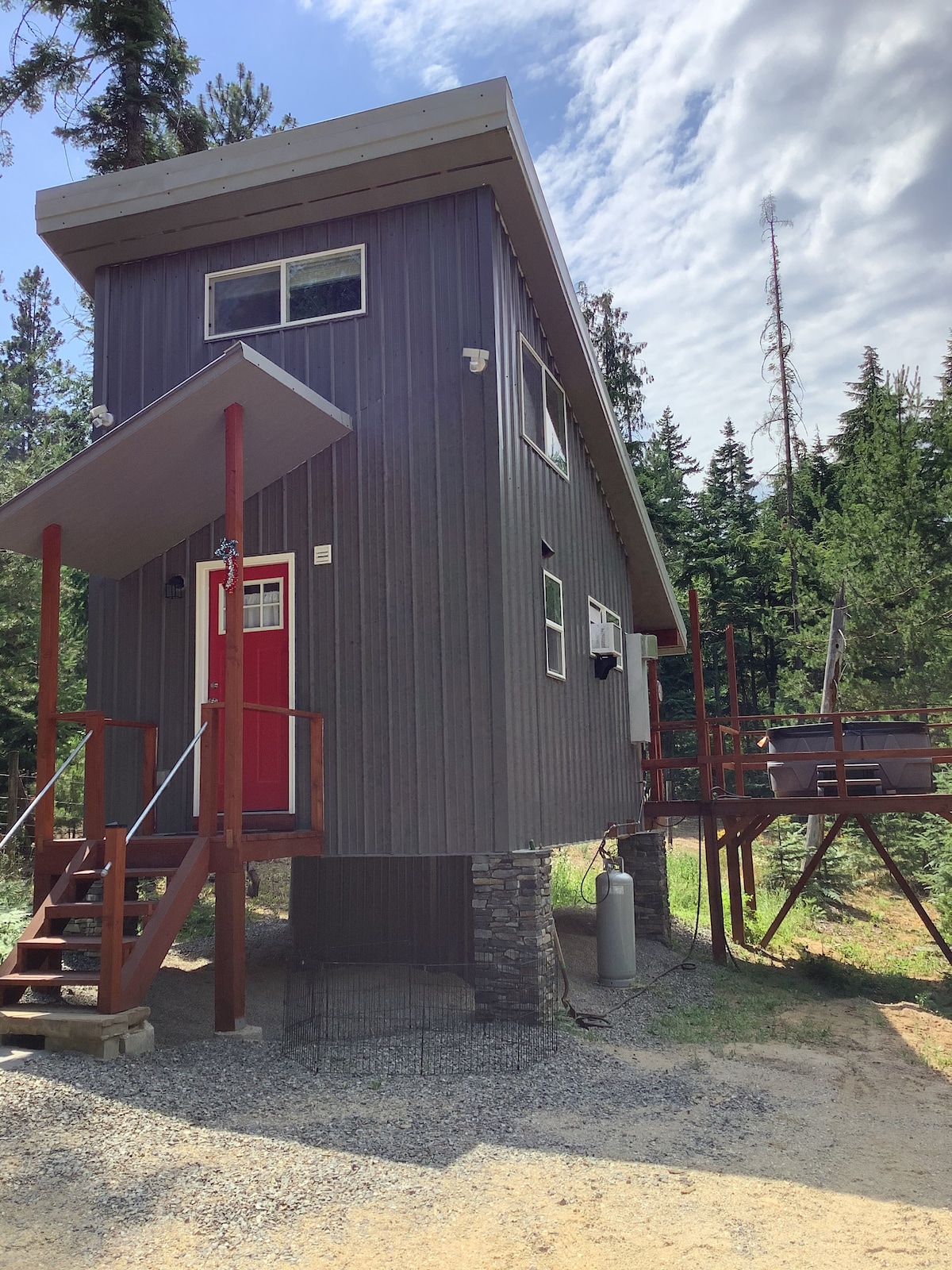 Kom bort från stadens liv och rörelse för en mysig vistelse i "Lekstuga". Vår moderna skandinaviska lilla stuga ligger undangömd på åsen av vår 40 hektar stora egendom med fri utsikt över den snöiga toppen av Mt. Spokane. Med en intim miljö, perfekt för par eller individer som söker en återställande tillflyktsort, är detta det perfekta stället att sakta ner och omge dig med naturlig skönhet medan du utforskar stigar eller de många närliggande Spokane höjdpunkterna.
