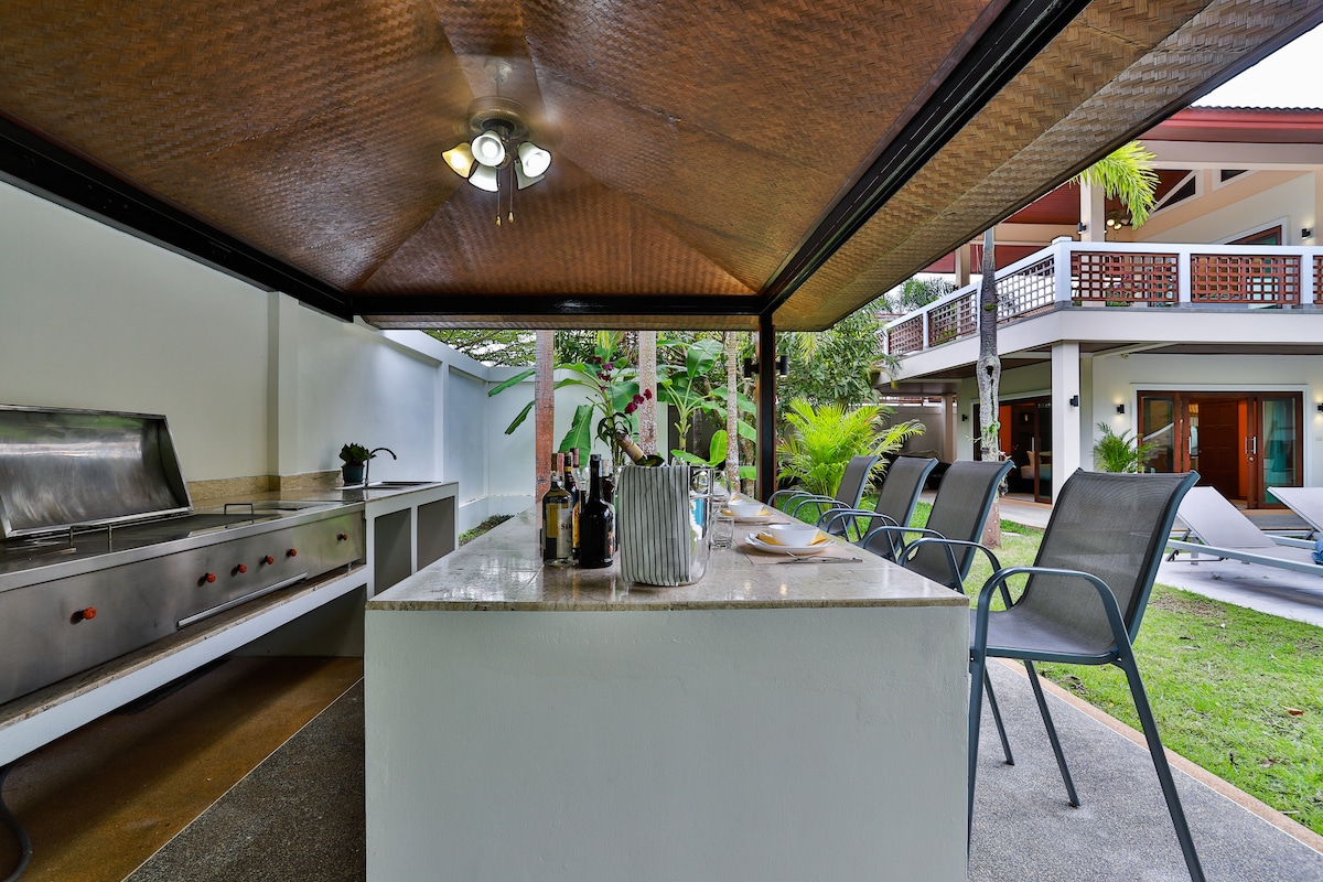 Privat poolvilla vid stranden, naturlig stil och designat bambustak inbäddat i en frodig tropisk trädgård och privat strand. Låt oss känna Siam och Balis vibbar. 2 luftkonditioneringsrum, 2 badrum, stort tropiskt romantiskt badrum och djungelhimmeldusch, halvöppet tak för att njuta av stjärnorna på natten. Allt är handgjort och designat. Halvöppet vardagsrum, kök, bord, stor soffa och läggplats, vilket skapar perfekta platser att koppla av varje ögonblick av dagen. Välkommen till din nästa tropiska och lyxiga upplevelse.