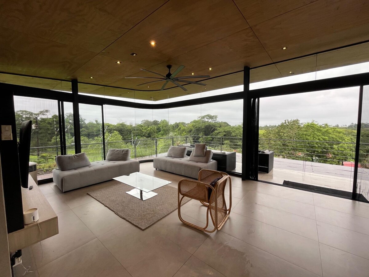 Välkommen till Pure Oxygen Rainforest Villa, en fridfull tillflyktsort 11 km från La Fortuna. Denna villa är perfekt för romantik eller avkoppling och blandar lyx med natur. Njut av en dubbelsäng, smart-TV och höghastighets-Wi-Fi. Villan har ett modernt badrum, utomhusdusch, fullt utrustat kök och tvättmöjligheter. Koppla av på terrassen med utsikt över regnskogen eller utforska den lummiga trädgården. Privat parkering garanterar bekvämlighet. Fly till lugnet och fördjupa dig i Costa Ricas livliga regnskog.