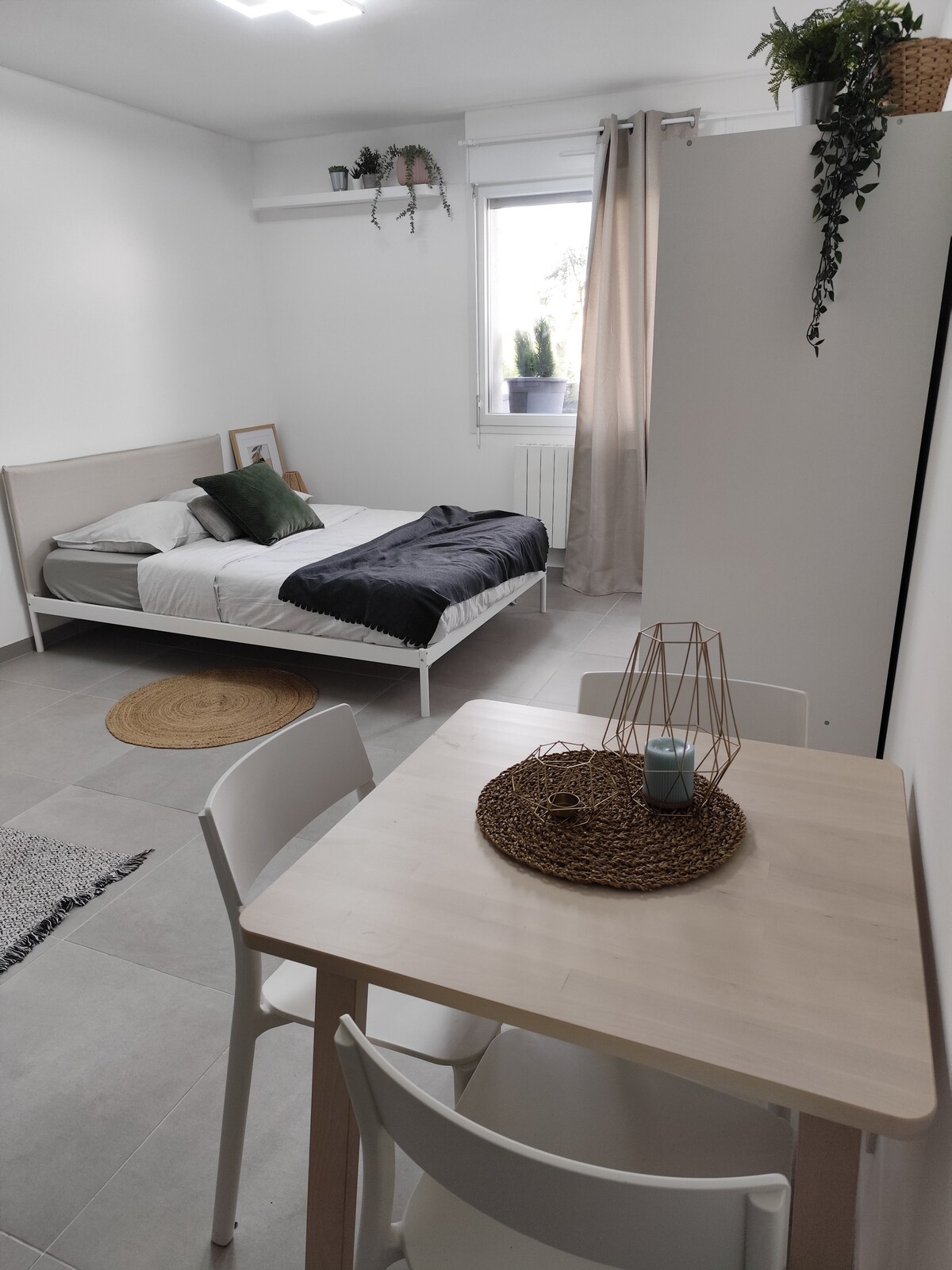 Studio entièrement rénové, lumineux et avec une décoration chaleureuse, idéal pour un séjour au calme entouré de verdure. Avantages: + accès rapide en voiture. Stationnement facile et gratuit dans la rue. Proche de la gare et du centre ville de Mulhouse : 5mn en vélo, 20 mn en bus et 25 mn à pieds. Accès rapide pour les autoroutes. + d'être à deux pas de toutes commodités (magasins alimentaires, Super U, La Poste, etc.) + Netflix et prise RJ45 // WIFI + accès au jardin et barbecue