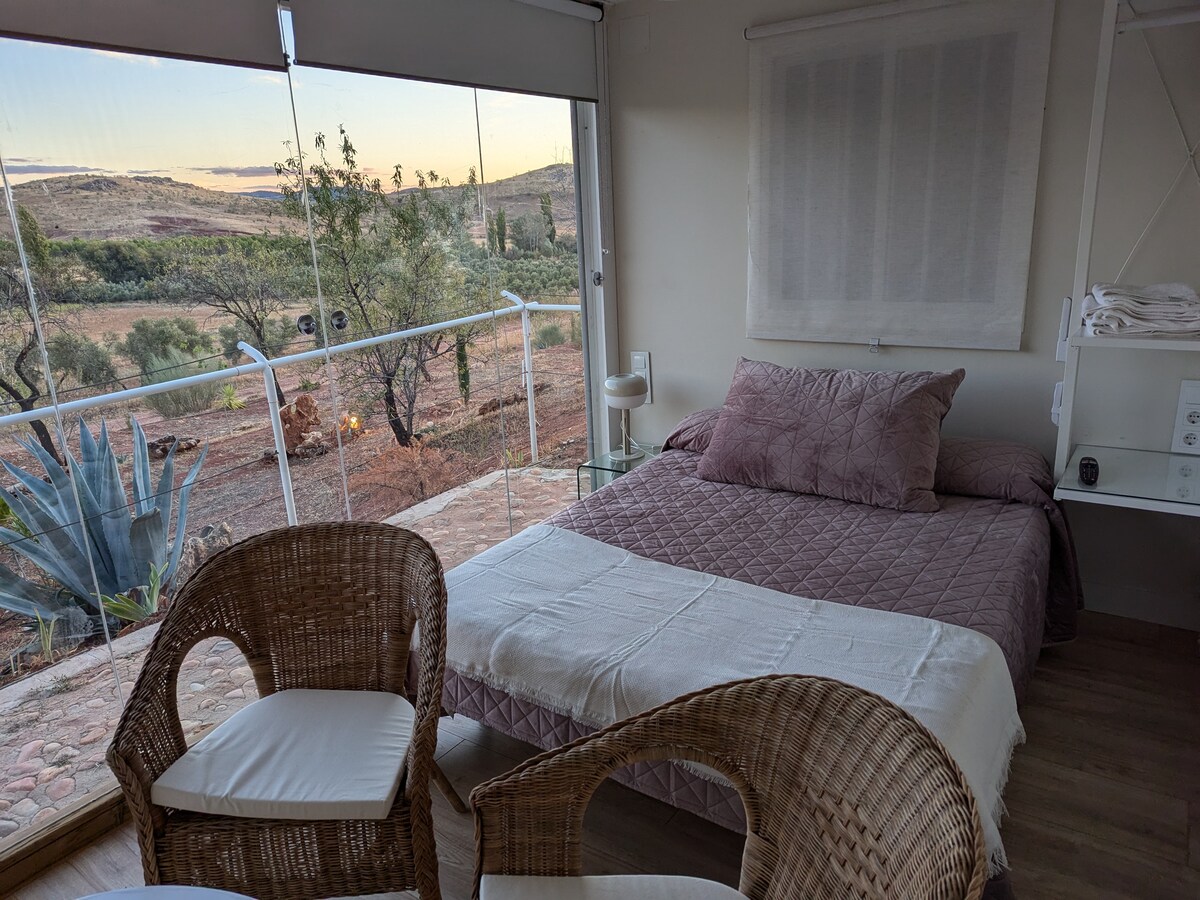 Bella Casita bredvid Laguna Blanca. 70 m2, 2 hab. och 1 badrum. Utomhusveranda och grill. Värme, öppen spis, trätak. I naturparken Lagunas de Ruidera och Ruta del Quijote. (12h@ Estate med 2 helt oberoende hus). Fantastiska stjärnklara nätter. Full uthyrning för 4 vuxna och alternativ för 2 extra barn. Vi tillåter husdjur (ange och betala) Parkera med 14 laguner. Vandring. Vattensport, hästar, cyklar. Guidade turer i grottor och det lokala köket.