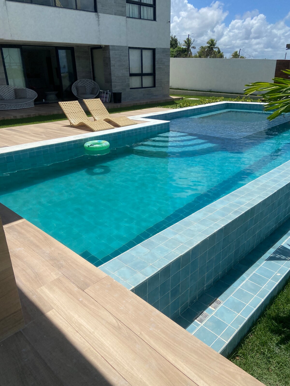 Hus vid stranden, Malawi Resort, med privat pool, 4 luftkonditionerade sviter, gourmetområde och fri tillgång till resortens struktur: gym, leksaksbibliotek, lekplats, planer, restaurang med strandtjänst. Rymmer upp till 11 personer bekvämt. Några steg från Muro Alto-stranden och bara 12 minuter från PORTO DE GALINHAS. Nära till de vackra naturliga poolerna i Cupe (10 minuters promenad). Perfekt för familjer, grupper eller de som söker lyx, säkerhet, nöje och fritid på ett ställe.