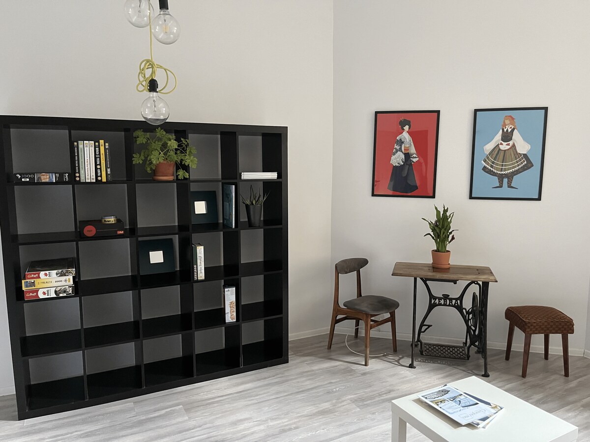 Wilda Apartments Cinema – bo i en ikonisk biograf! Detta ställe har själ och historia – det fungerade en gång som en plats för vila för skådespelare och regissörer som besökte staden. - Loftslägenhet (37 kvm) - Parkeringsplats x 1 - Låsbart vardagsrum + låsbart sovrum - Självincheckning - Wifi - Huvudjärnvägsstationen - ca. 15 minuter till fots - Poznań International Fair - ca. 20 minuter till fots - Grannskap fullt av restauranger / kaféer