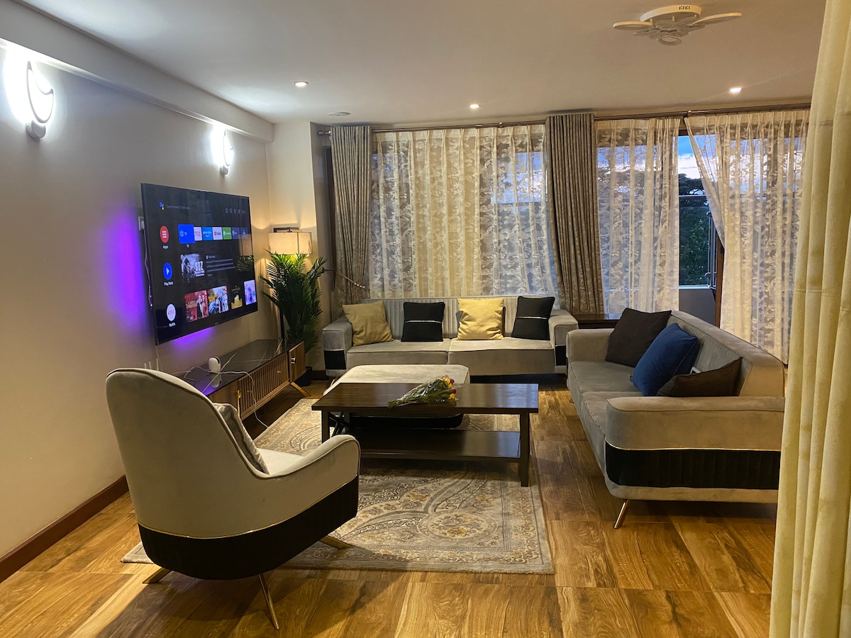 Hela denna eleganta lägenhet är modern, rymlig och bekväm, med ett sovrum och eget badrum, lyxig dubbelsäng, vältalig matsal, sovrum och lounge Netflix-TV, balkong, kök och tvättmaskin. Alla bekvämligheter som tillhandahålls, inklusive obegränsat snabbt wifi och affärsfaciliteter. Beläget i en lugn lummig förort, men också bekvämt nära Westgate, Sarit och Lavington köpcentra, restauranger, affärscentrum, CBD och några meter promenad från Westlands nattliv.