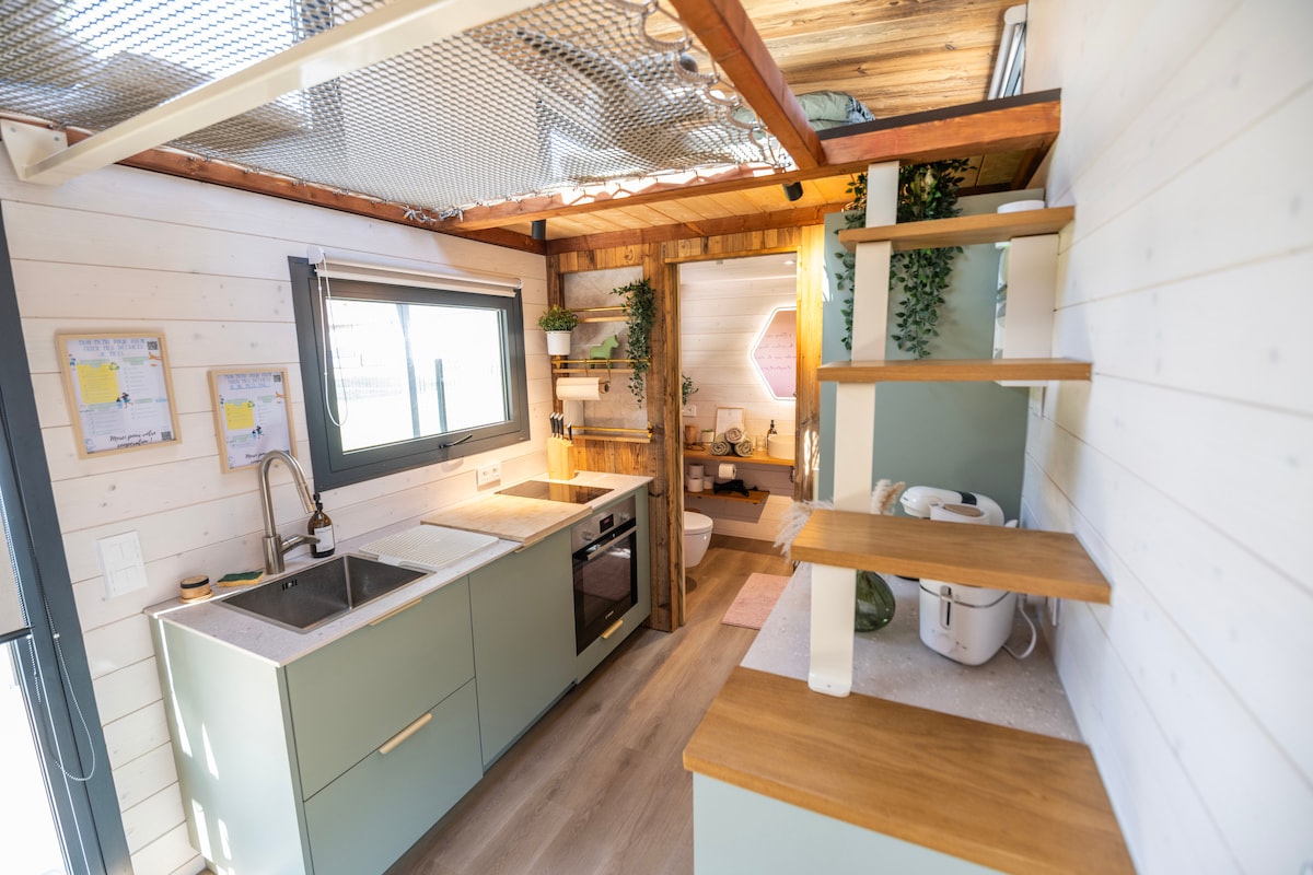 Letar du efter en ovanlig semester mitt i naturen? Upptäck vår träkapsel, ett ovanligt 13 m2 stort boende, inbäddat i vår gröna trädgård. Perfekt för en avkopplande paus för par, familjer eller grupper av vänner (upp till 4 personer).