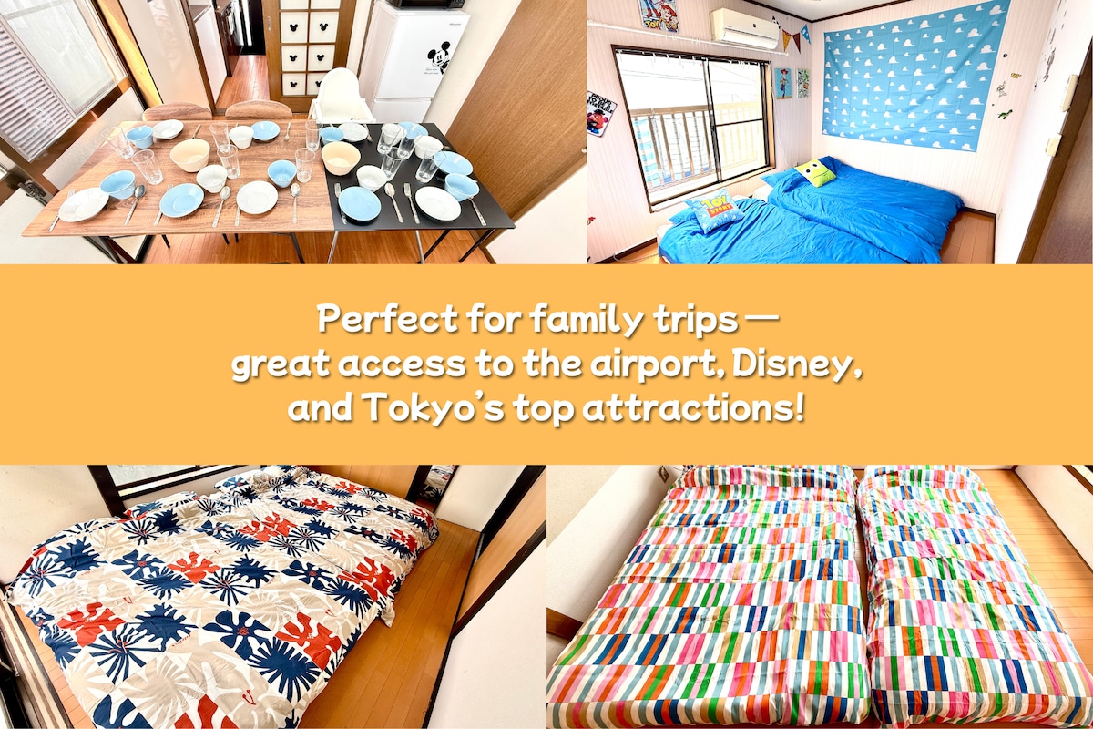 ☆Välkommen till vårt nyöppnade (aug 2025), helt renoverade, rymliga 2-våningshus bara 15 minuters bilresa från Tokyo Disneyland☆ ✅ Japanska och västerländska sovrum ✅ Familje- och barnvänligt👶: barnstol, barnvagn, barnporslin, spel för alla ✅ Gratis cykeluthyrning 🚲 | Betald parkering i närheten ✅ Skrivbord och stol + snabbt 10 Gbit/s wifi 💻 ✅ Fire TV med gratis Disney+ ✅ Fullt utrustat kök 🍳 ✅ Nära butiker, kaféer, körsbärsblom, Edo River, BBQ park & fågelreservat 🌸 Perfekt för familjer, grupper och distansarbetare!