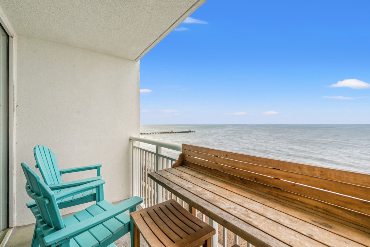 TRUE 1 bd 1 ba 9th flr END UNIT oceanview sunrise condo är allt du letar efter! Rymligt master erbjuder 1 King. Ny sovsoffa och matbord i vardagsrummet. Ny dusch. Tvättmaskin/torktumlare I ENHETEN! Vardagsrum med skjutdörr som öppnar till din balkong med havsutsikt. Fullt utrustat kök med nya vitvaror. Bifogat, inhägnat parkeringsgarage. NY HVAC för komfort! Bekvämt beläget nära Springmaid Pier, State Park, Market Common, flygplats. Inomhus-/utomhuspooler, lat flod, bubbelpool, gym, däck vid havet.