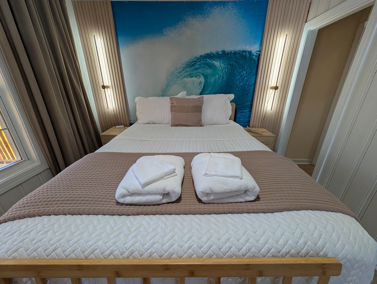 Helt renoverad 2022, lägenhet vid havet med kvartsbänkskivor, skåp i shakerstil och rostfria apparater, nytt vardagsrum, matsal och sovrum och möbler, golv, 55in Roku TV, höghastighetsinternet, nya sängkläder, belysning och mycket mer! Det är modernt, fräscht, avslappnat och bekvämt! Vi har tillhandahållit massor av bekvämligheter och gott om förvaring för din egen komfort hemifrån. Beläget i hjärtat av MB och en kort promenad till många restauranger, kaféer, barer, konferenscenter, strandpromenad och mycket mer!