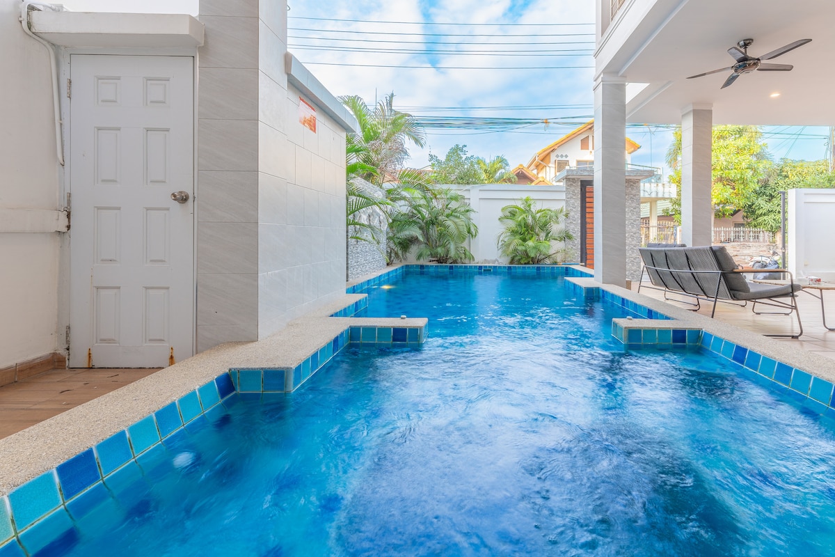 Denna villa S2 nära Walking Street Pattaya är en riktigt spännande tillflyktsort!Det finns 4 rymliga sovrum som rymmer 8 personer. Varje sovrum har ett privat badrum och dusch. Det stora sovrummet är extra stort och har ett extra stort badkar. Det finns också en bastu i villan. Efter bad kan du gå till bastun för att svettas. Du kan njuta och koppla av här. Det finns också ett biljardbord i villan. Det finns en grill. Du kan spela pool, ha en grillfest vid poolen och ha kul med din familj eller dina vänner. Villan är mycket väl belägen, mitt i Pattaya, bara 1,5 km från havet och gågatan, vilket ger dig enkel tillgång till de vackra stränderna och den livliga gågatan.Dessutom finns det en 711 stormarknad nära villan, bara 300 meter att gå ut, en hel del restauranger i närheten, det finns också en nattmarknad, massor av mat och bra priser Det perfekta läget och enkel tillgång till transport gör att du kan njuta av det vackra landskapet och det färgglada livet i Pattaya.
