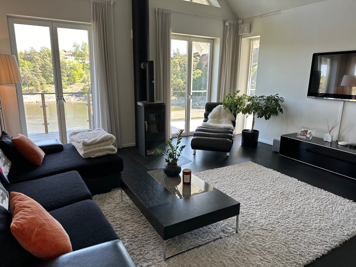 Njut av hela 50 m2 båthus med egen bastu inuti boendet och panoramautsikt över vattnet. Bada från badstege direkt från sovrummet. Ni kommer att få en minnesvärd upplevelse på grund av utsikten, det vackra och fridfulla läget, trädgården och bryggan. Vårt boende passar par som vill uppleva någonting extra, överraska och fira sin partner Eller äventyrare som vill komma nära naturen och även vara nära Stockholm. Vi erbjuder även ett tillval med vedeldad bastu & spabad kvällstid.