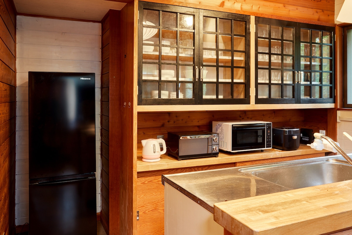 Det är ett lugnt utrymme med ett gammalt husmotiv. I vardagsrummet finns en stor kotatsu-eldstad där du kan njuta av mat och dryck. Det finns också en bar med fyra sittplatser. Det finns Nozawa Onsen skidbacke, Shiga Kogen, Madarao Kogen skidbacke, Togari Onsen skidbacke, etc. i närheten, vilket gör det till en idealisk bas för vintersporter. Under den gröna säsongen finns det 8 golfbanor, inklusive Madarao Country Club, som du kan nå inom en timme, och det finns många dagliga onsen-anläggningar. Ägaren bor på höger sida av ingången och kan kontaktas när som helst. Han kan prata engelska på vardaglig nivå. Under den gröna säsongen kan du när som helst skörda färska grönsaker från din egen trädgård och njuta av en grillfest i trädgårdens azumaya. Trädgården är stor så du kan njuta av en liten promenad. Iiyama är känt för sina gröna sparrisar, som kan avnjutas från maj till juli. Det finns också en rastplats i närheten där du kan njuta av färska grönsaker och goda nudlar.