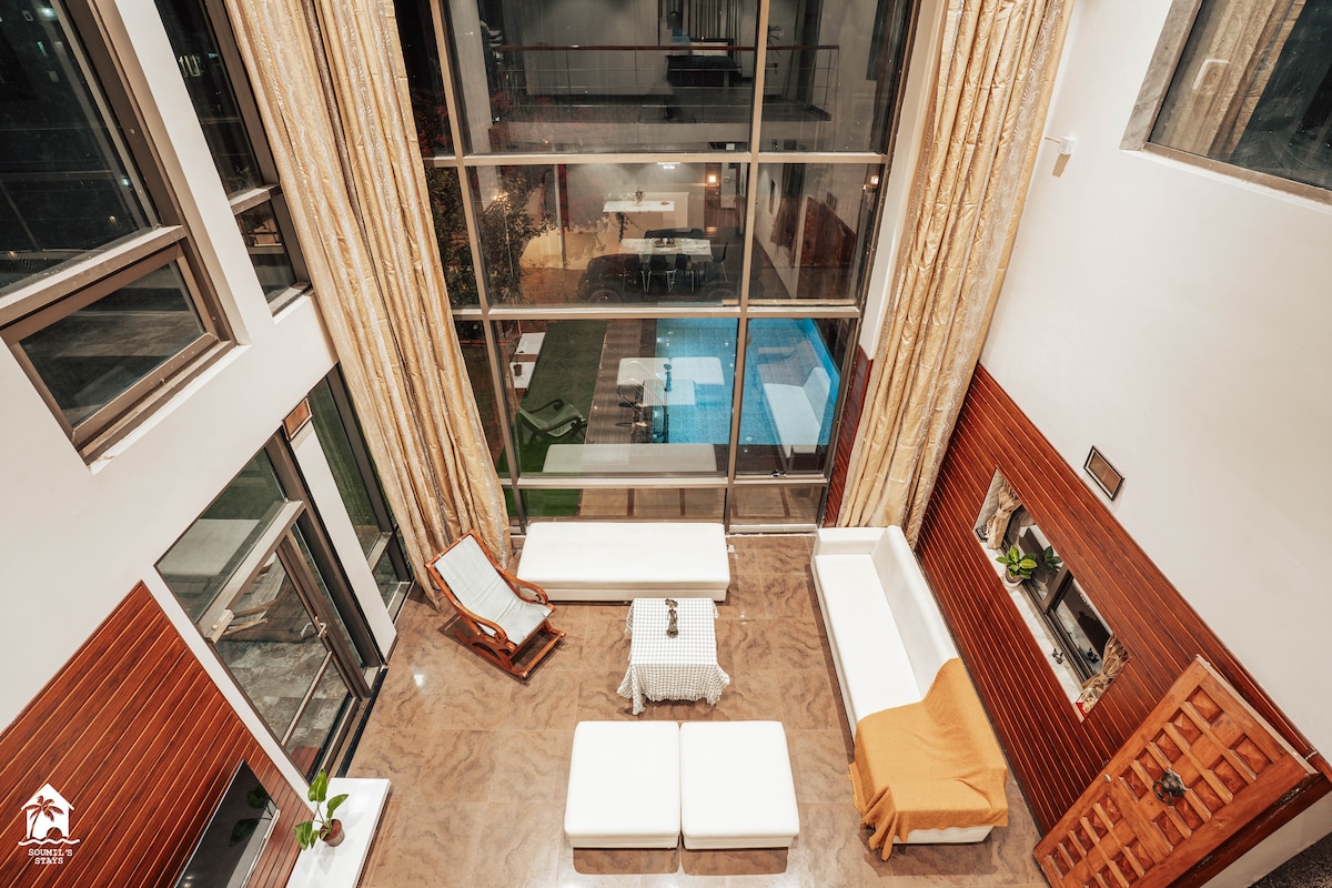 A rare 1-acre private estate in Alibag, Baagh Estate Villa offers a perfect balance of space, comfort, and curated experiences. Featuring a large 20x40 ft private pool, soaring 18-ft ceilings, and warm, boho-inspired interiors, this 4-bedroom villa is ideal for families, groups of friends, corporate offsites, and intimate celebrations seeking privacy and tranquility close to nature.