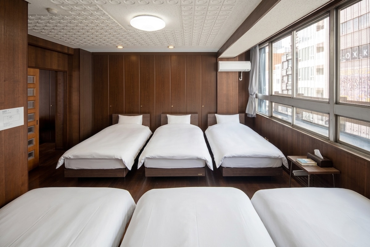 Välkomna hem till oss! Önskar dig en trevlig tid och en underbar resa. Vi har förberett ett enkelt och elegant rum.Det är ett lugnt utrymme där du kan koppla av i en rymlig säng.Med ett utmärkt läge precis vid stationen och full utrustning kan du njuta av en bekväm vistelse oavsett om du bor en kort tid eller en lång tid.Njut av en minnesvärd tid medan du njuter av en bekväm stadsvistelse. Detta är ett nytt boende i Nagoya-området som öppnade i februari 2026. Perfekt för gruppresor med familj och vänner.Tillgång till populära platser som Osu Kannon, Nagoya Port Aquarium och Inuyama Castle är också bra, så du kan njuta av sightseeing och shopping till fullo. Tillgång 2 minuters promenad från Higashiyama tunnelbanelinje Shinei station. Att ta sig till Nagoya Station och stora turistmål är också smidigt. Om rummet Den rymmer upp till 5 personer. Rekommenderas för familjeresor, vänner och par. 2 dubbelsängar 1 enkelsäng [In- och utcheckning] Tyvärr accepterar vi inte tidig incheckning eller sen utcheckning. Vi ser fram emot ditt besök.