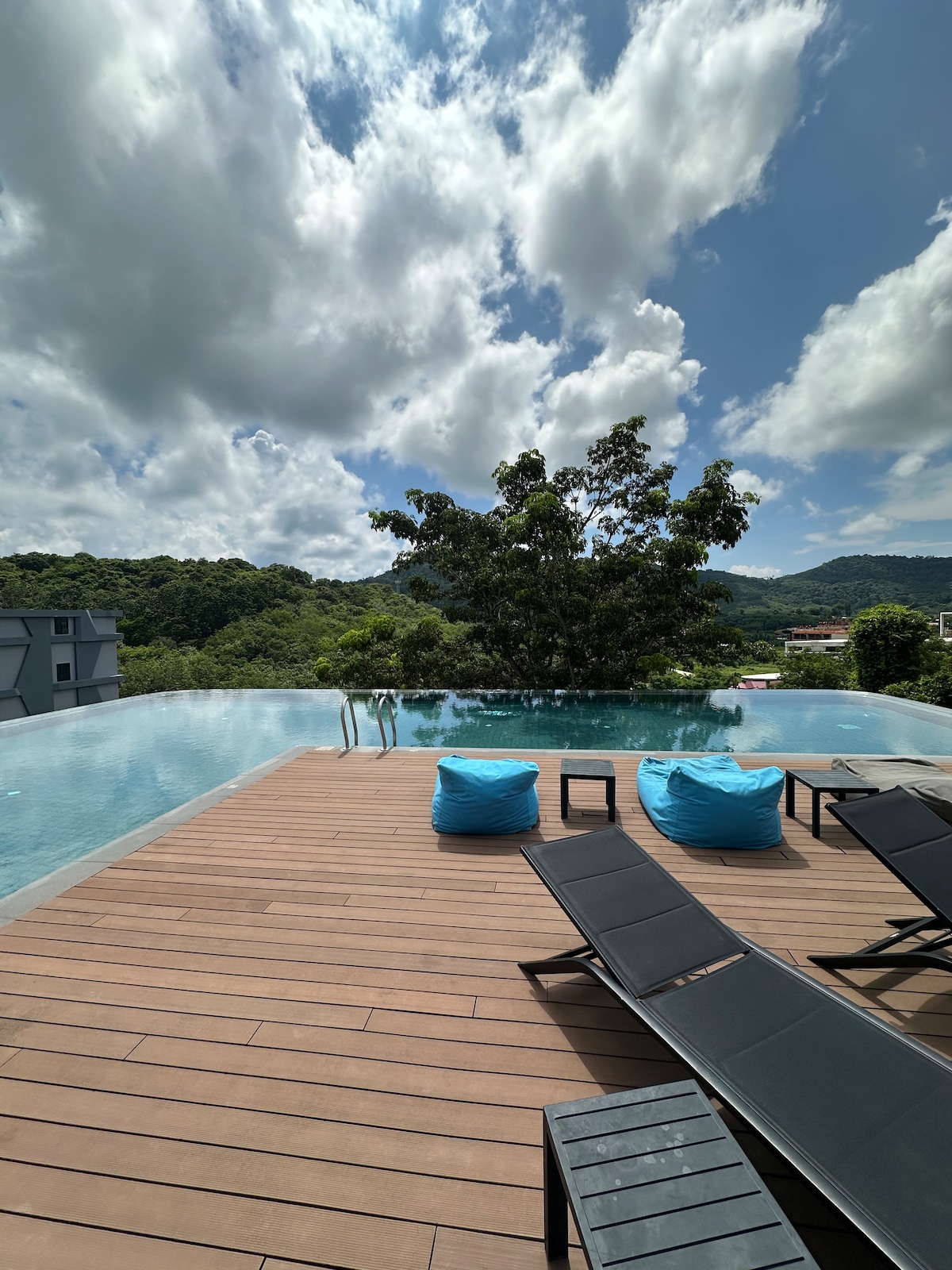 På en kulle nära vackra Nai Harn strand, omgiven av berg i norr och havet i öster, ligger denna stora 140 kvm lägenhet inklusive två terrasser och privat infinitypool i ett lugnt område. Med tropisk omgivning och liten havsutsikt med Phi Phi-öarna i fjärran. Med fantastisk utsikt och en sval bris kommer denna lyxiga lägenhet med frodig trädgård och fantastiska soluppgångar. Du hittar lägenheten på bottenvåningen i vår Treetop Villa med egen ingång.