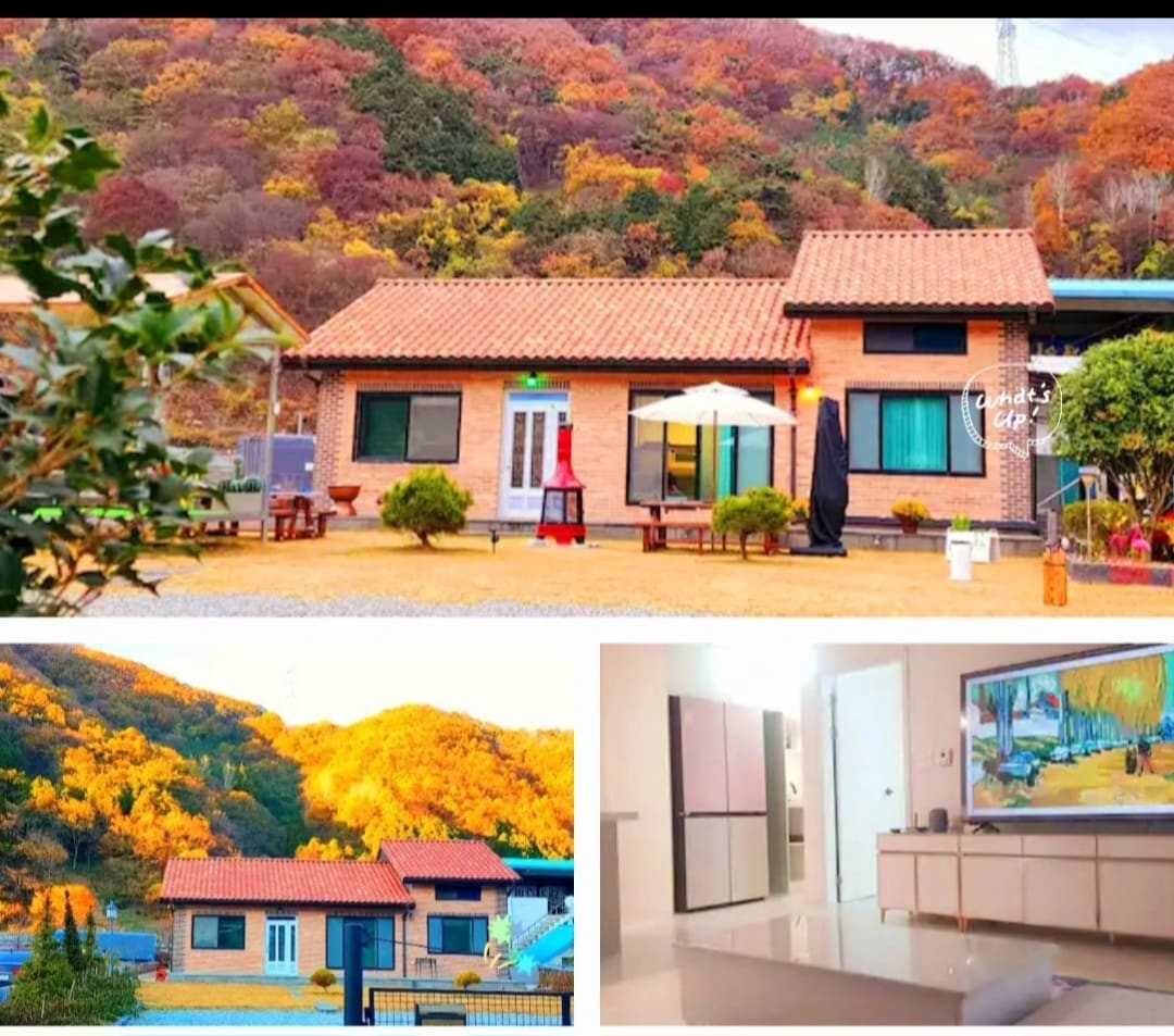 Chon Cancus. 5 minuter från körsbärsblomvägen Happy. Golden Golf 5 minuter, Naju Gomtang-gatan 10 minuter. Grill och lägga sig vid brasan Hundvänligt. 5 minuters bilresa till Su-mok-won
