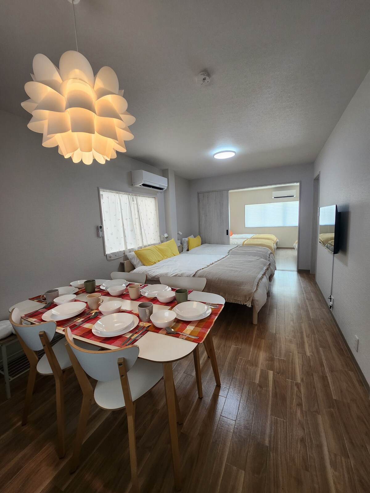 [Ny japansk stil och japansk värd] Detta pensionat ligger i centrala Osaka, totalt 93 kvadratmeter, med ett vardagsrum och matplats, fyra separata rum, två toaletter🚻, två badrum🛀, en stor balkong. (Rökning🚬 tillåten på balkongen med askkopp, ingen rökning inomhus🚭) [Boendets läge] Nihonbashi stationsutgång: 1 minuters promenad. Kurobori marknad: 2 minuters promenad. Namba, Sennichimae shoppingområde: 8 ~ 10 minuters promenad. Shinsaibashi: 7 minuters promenad. Dotonbori: 5 minuters promenad. Det finns närbutiker, kaféer, stormarknader och olika matbutiker inom 500 meter från boendet. [Boendeintroduktion] Sovrum 1: Två dubbelsängar Sovrum 2: en dubbelsäng Sovrum 3: Två dubbla tatamibäddar Sovrum 4: en tatami dubbelsäng (Varje rum har luftkonditionering) Det finns ett kök (fullt utrustat kök) i vardagsrummet, gratis Wi-Fi, vattenkokare, riskokare, mikrovågsugn, kaffemaskin, kylskåp, tvättmaskin (torktumlare) tvättmedel, massagestol, hårtork, tandborste, tandkräm, duschtvål, schampo, balsam, badhandduk, handduk, barnstol. * Rökning tillåten utanför balkongen🚬, ingen rökning tillåten inomhus * * B&B kan erbjuda flygplatsöverföring, charterresa och lek (avgifter beräknas separat) Du kan alltid kontakta oss om du behöver något. Vi hjälper också till att boka restauranger och hjälpa till med översättningstjänster, tack så mycket😊 # Detta boende är en lägenhetsbyggnad med hiss, och det är🔑 mycket säkert att använda en kod för att hämta nyckeln vid incheckning. Vi ser fram emot att alla har en trevlig vistelse, har kul, handlar glatt, äter glatt