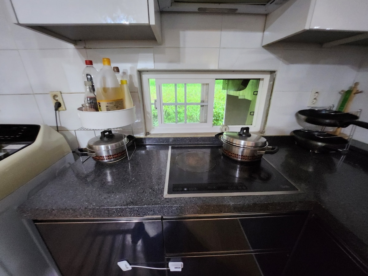 Incheckning 15:00/utcheckning 11:00 (Vänligen checka ut eftersom nästa gäst kommer att städas) * Detta är ett boende där du kan tillbringa en lugn tid med havsutsikt i ett lugnt grannskap * Vid användning av grill är den tillgänglig efter ytterligare betalning på 20 000 KRW. * 31 januari 2026, vi kan inte tända en grill med kol. * Kol och brasier kommer att rökas senast kl. 19:00 Berätta för mig före 17:00 om du vill använda den. * Observera Standard (max) antal personer är 4 Tandborste, tandkräm, duschhandduk tillhandahålls inte: > Det finns en extra sängkläder (per varje) 10 000 won Rökning inomhus och dedikerade aktiviteter är absolut förbjudna,❌ och kött, grillning av fisk och gasbrännare är förbjudna inomhus. Eftersom det är ett avskilt område, avstå från aktiviteter som skadar de omgivande invånarna. (Smällare, skrik, etc.❌) På grund av landsbygdens natur kan det finnas insekter, så notera detta när du bokar! (Inga återbetalningsförfrågningar på grund av detta) Minderåriga är inte tillåtna utan en vårdnadshavare (vuxen). Vi tar inget ansvar för förlust av dina tillhörigheter.